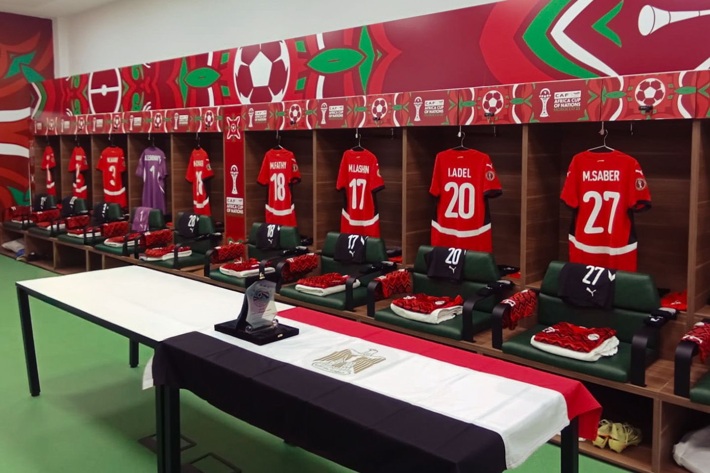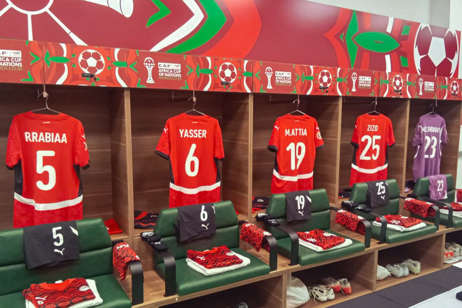 حصل صدى البلد على صور لقمصان لاعبي منتخب مصر داخل غرفة ملابس ملعب أدرار بمدينة أغادير المغربية قبل مواجهة منتخب كوت ديفوار، ضمن منافسات الدور ربع النهائي من بطولة كأس الأمم الإفريقية 2025، في مباراة مرتقبة تحمل طابعًا خاصًا نظرًا لقوة المنتخبين وثقلهما القاري.