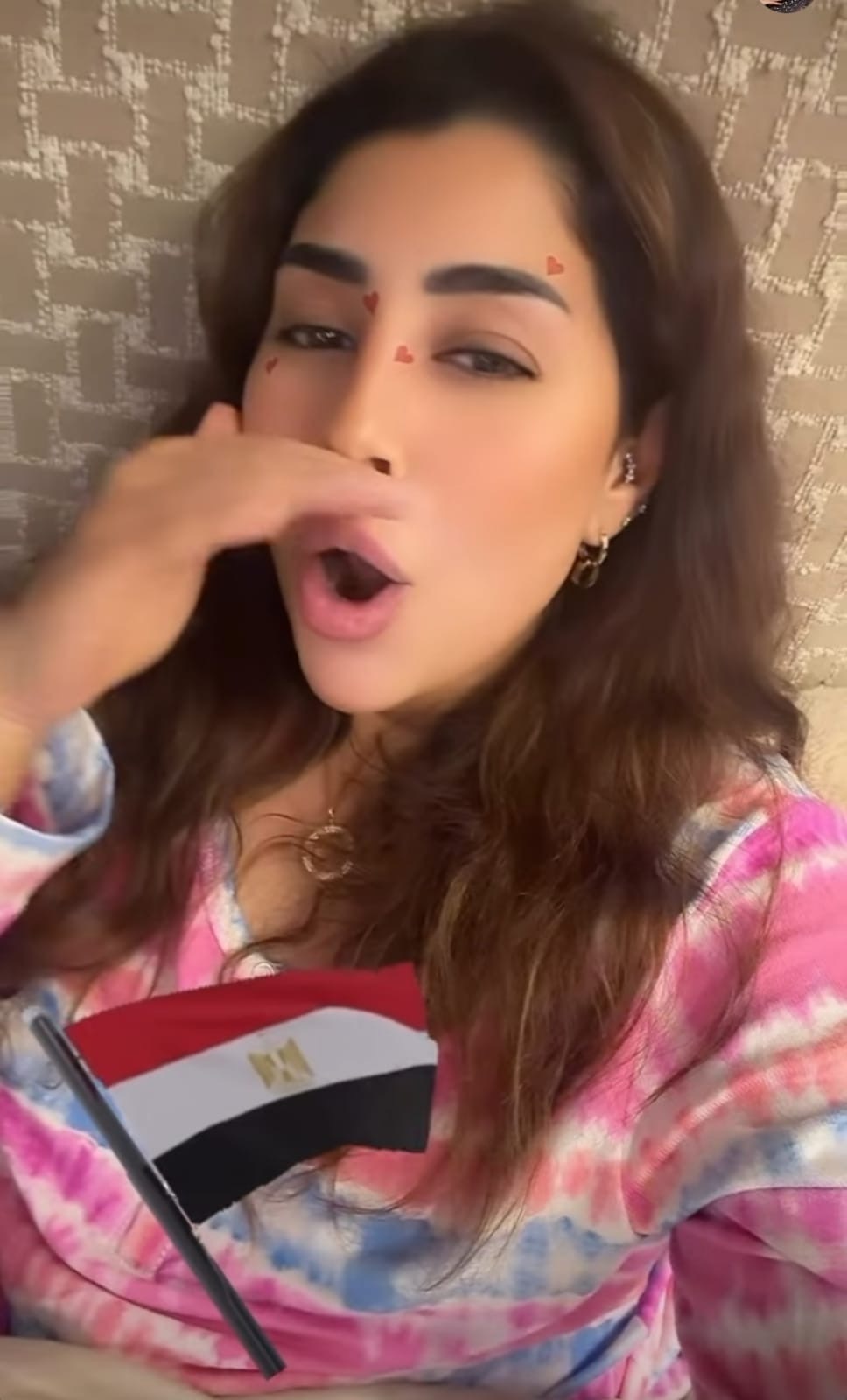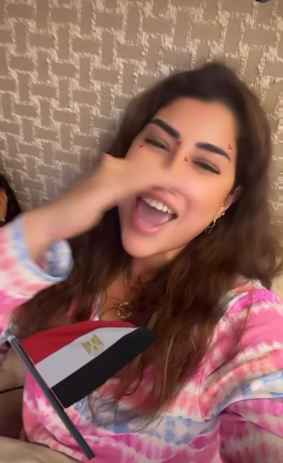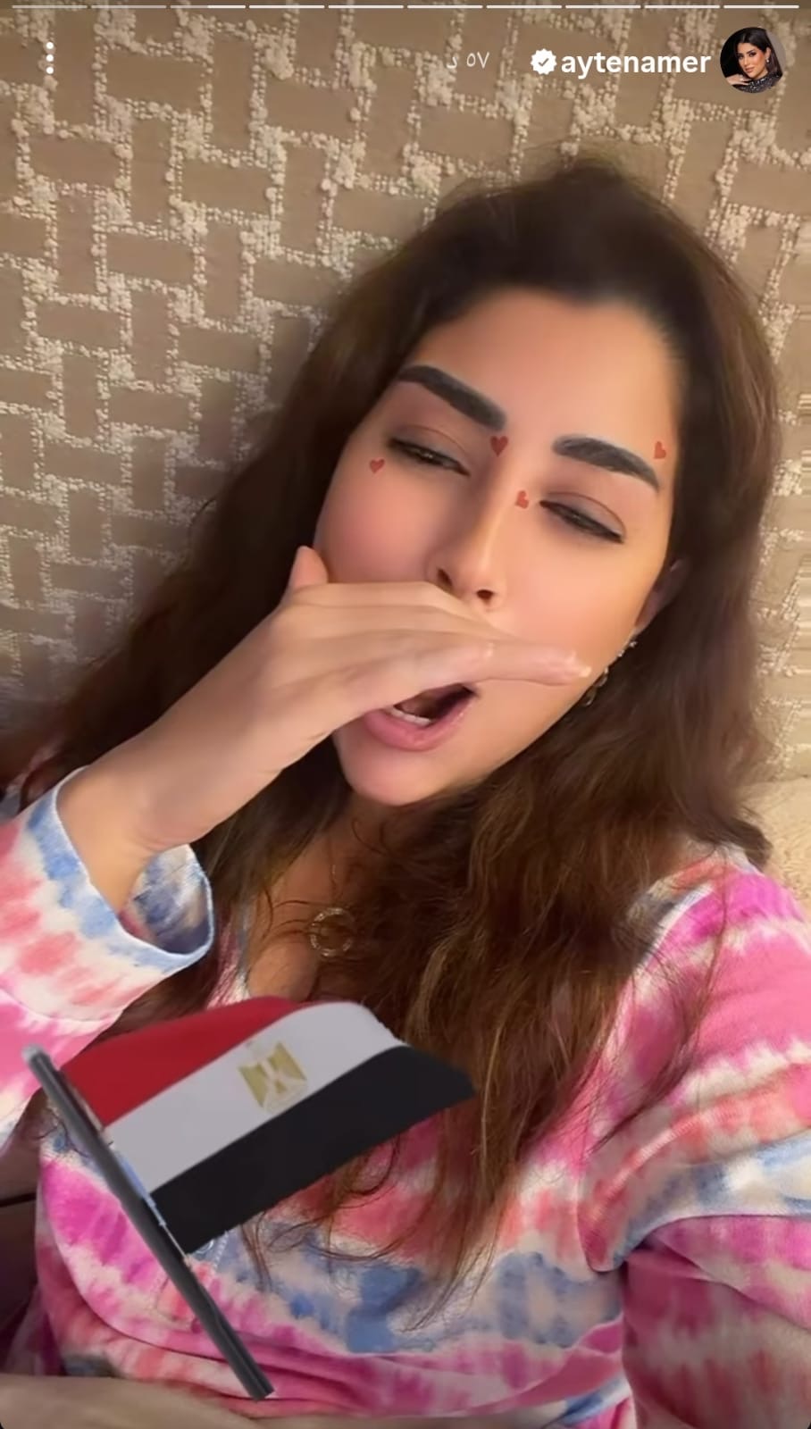 ونشرت "آيتن" مقطع فيديو عبر استوري حسابها على "انستجرام" عقب انتهاء المباراة، وظهرت وهي بعلم مصر وقامت بغناء أغنية "والله وعملوها الرجالة" المعروفة للفنان حمادة هلال .