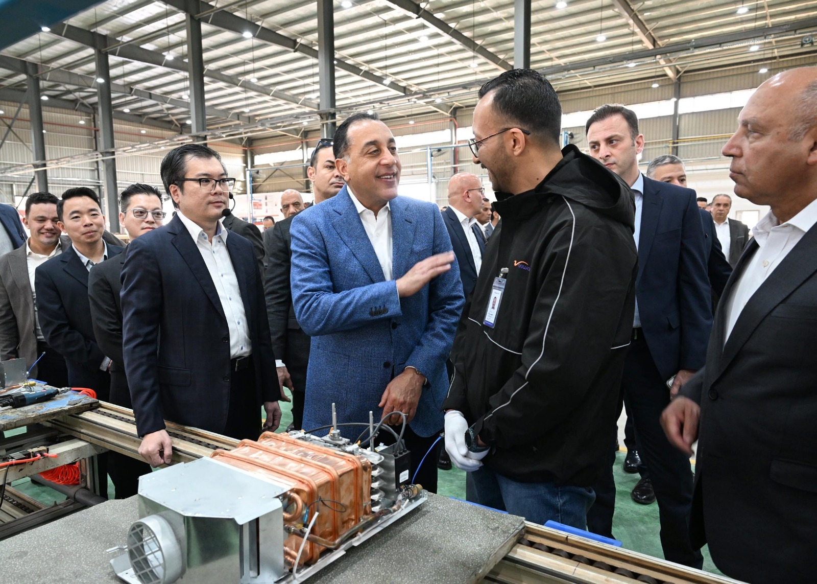 افتتح اليوم الدكتور مصطفى مدبولي، رئيس مجلس الوزراء، ومرافقوه، مصنع شركة "فانوارد"، المتخصص في تصنيع الأجهزة المنزلية والمبادلات الحرارية، ضمن نطاق المطور الصناعي "تيدا - مصر" بالمنطقة الصناعية بالسخنة داخل المنطقة الاقتصادية لقناة السويس؛ وذلك في إطار جهود الدولة لتوطين الصناعات الهندسية المتقدمة ودعم مشروعات إحلال الواردات.