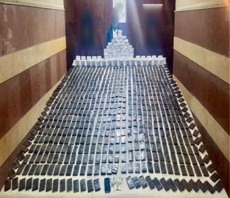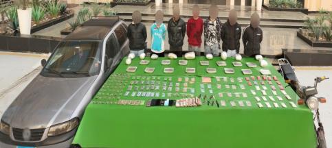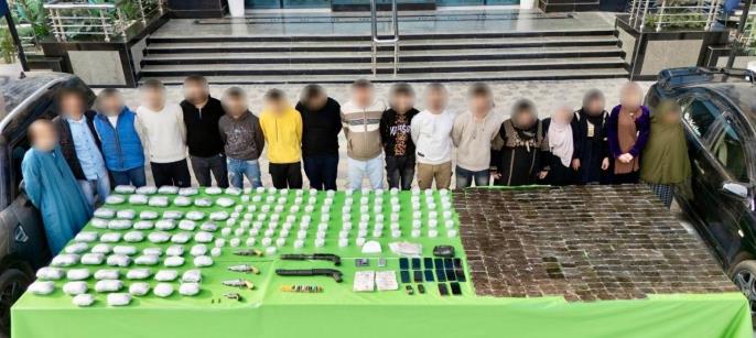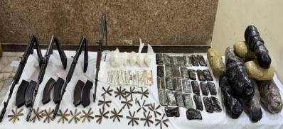 كوكايين" – 7650 قرص مخدر – 29 قطعة سلاح نارى "رشاش جرينوف ، 8 بنادق آلية ، 4 بنادق خرطوش ، 16 فرد خرطوش").