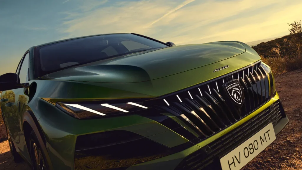 بالاضافة إلي ان سيارة بيجو 408 موديل 2026 بها، شعار بيجو المضيء في المقدمة مع حروف Peugeot المضيئة على غطاء الصندوق الخلفي، ويبرز بها اللون الأخضر المتوهج الجديد الذي يتغير بريقه حسب زاوية ضوء الشمس مما يجعلها قطعة فنية متحركة.