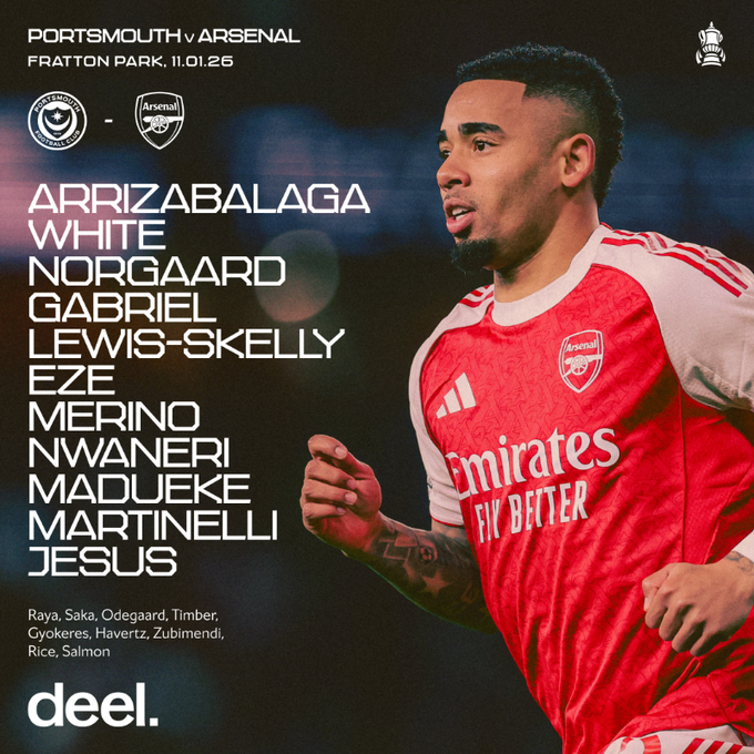 كشف ميكيل آرتيتا، المدير الفني لفريق آرسنال، عن تشكيلة الجانرز التي ستخوض مواجهة بورتسموث مساء الأحد، ضمن منافسات الدور الثالث من كأس الاتحاد الإنجليزي.