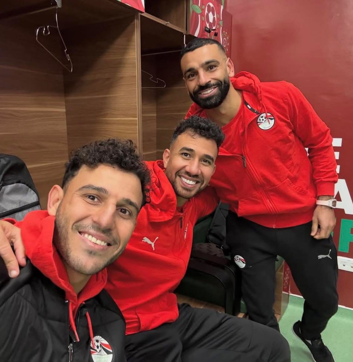 ونشر حمدي فتحي، الصورة التي تجمعه بالثنائي، من غرفة الملابس بعد الفوز على كوت ديفوار في ربع نهائي كأس أمم أفريقيا، وعلق عليها: "محترفين وربع".