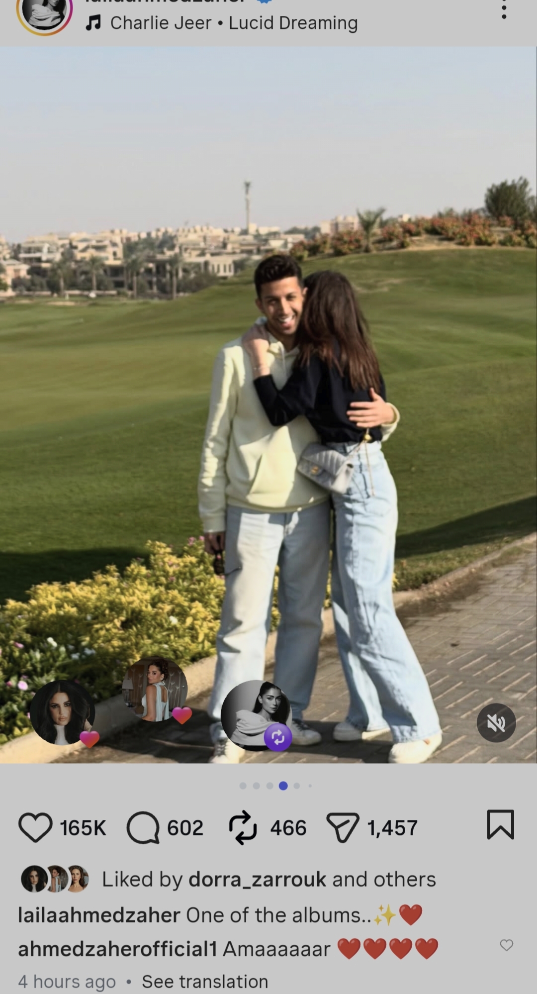 وشاركت ليلي زاهر عده صور رومانسيه برفقة زوجها،مما حازت الصور علي إعجاب متابعيها.