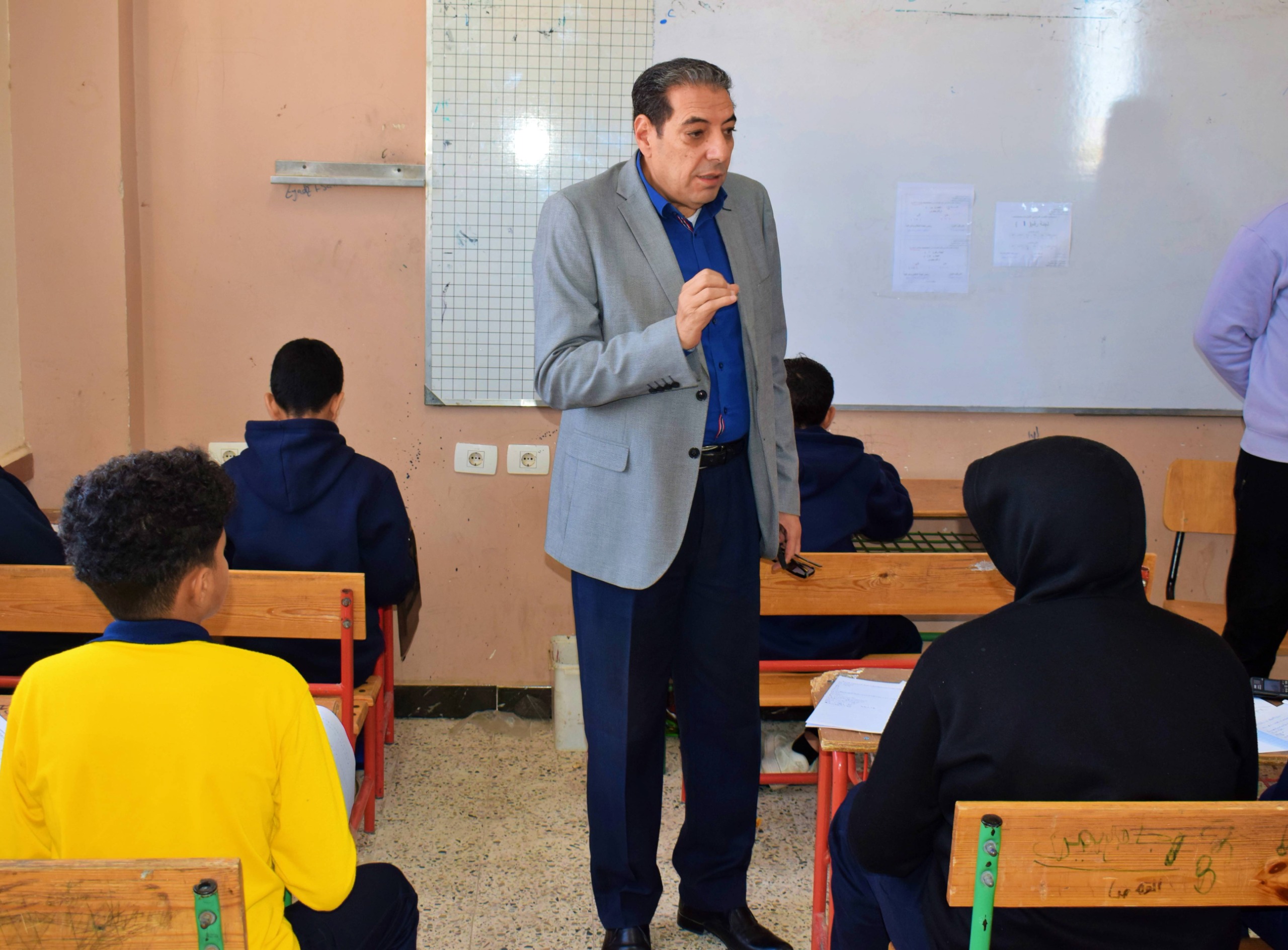 جاء ذلك خلال جولته التفقدية التي أجراها اليوم الإثنين 12 يناير الجاري، لمتابعة سير الامتحانات بلجان مدرسة الأهرام الرسمية لغات بمدينة طور سيناء، بمختلف المراحل التعليمية، حيث أكد ضرورة توفير أقصى درجات الهدوء والانضباط داخل اللجان، بما يهيئ المناخ المناسب للطلاب لأداء الامتحانات.