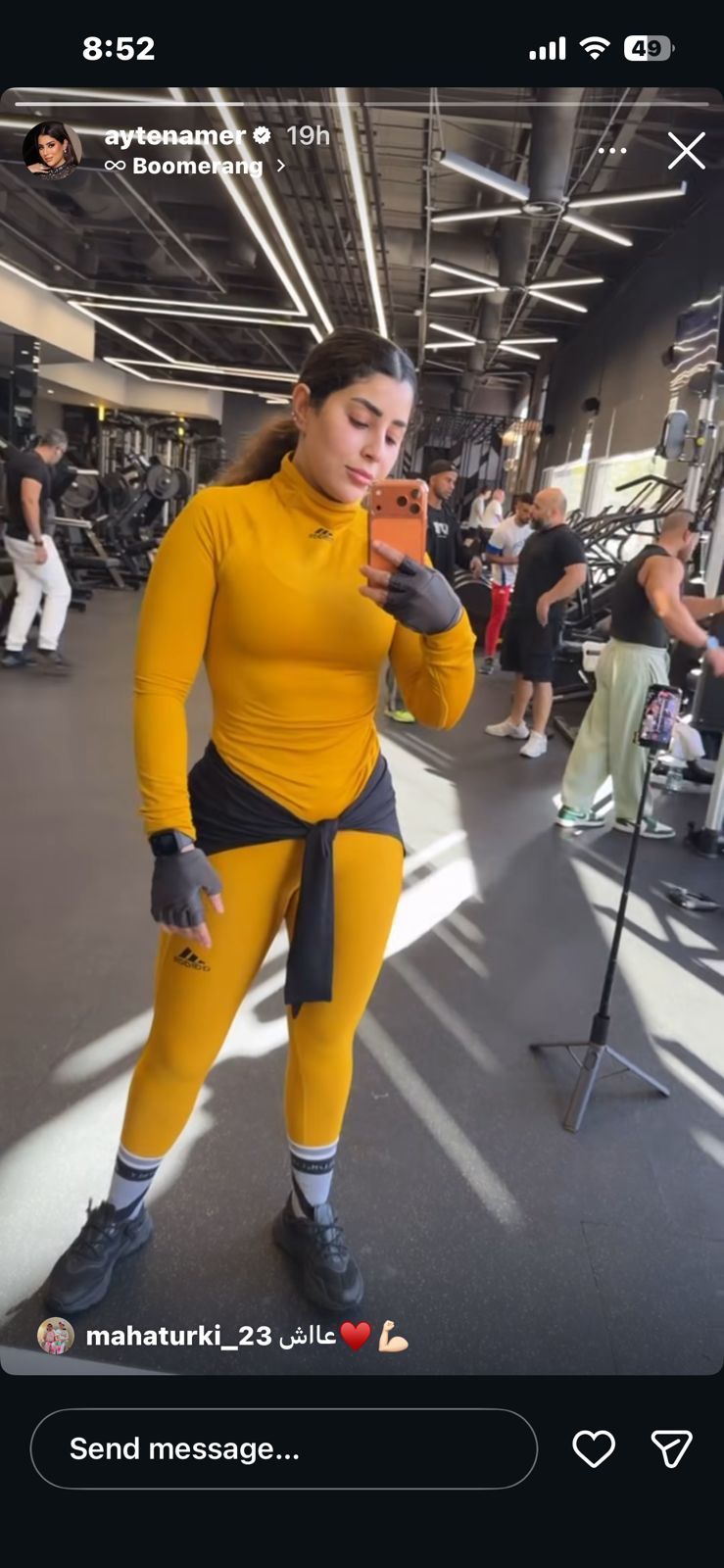 وظهرت أيتن عامر في الصورة من داخل الجيم، أبرزت من خلالها رشاقتها.