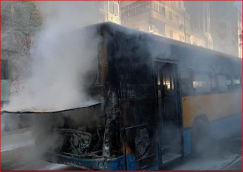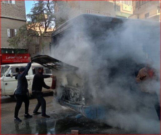 تلقت شرطة النجدة، بلاغا باشتعال النيران في أتوبيس تابع لهيئة النقل العام، أمام أحد المستشفيات، نطاق قسم شرطة العمرانية.