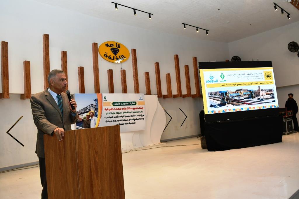 وسط أجواء من الفرحة والترحيب الشعبى ، قام اللواء دكتور إسماعيل كمال محافظ أسوان بوضع حجر الأساس لإنشاء كوبرى كيما للمشاة بمزلقان كيما بـ 4 مصاعد كهربائية وبشكل متناسق مع الهوية البصرية للمحافظة وبتكلفة تقديرية تصل لنحو 11 مليون جنيه ، ومن المقرر نهوه خلال 8 شهور ، وذلك فى خطوة هامة تم فيها مراعاة أعلى معايير السلامة والأمان .
