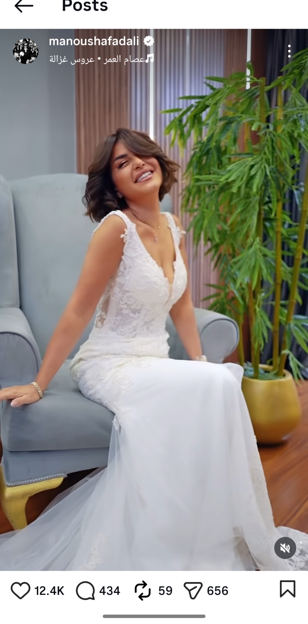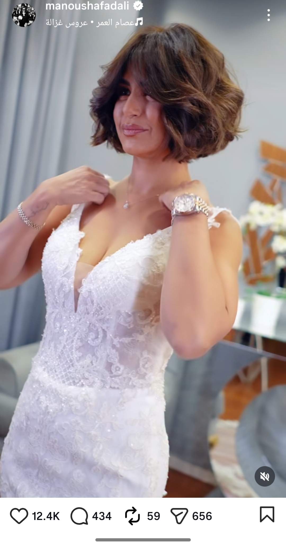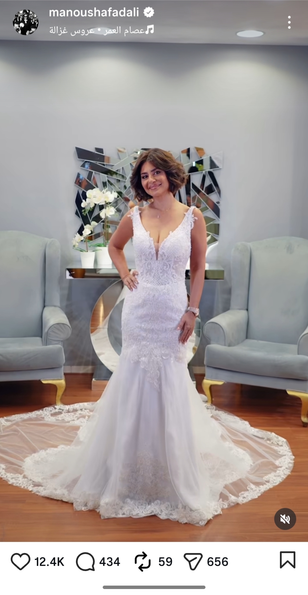 و تألقت منة فضالي في الفيديو بفستان زفاف أبيض، مما أثار تساؤلات بين جمهورها حول سبب ارتدائها لهذا الفستان.