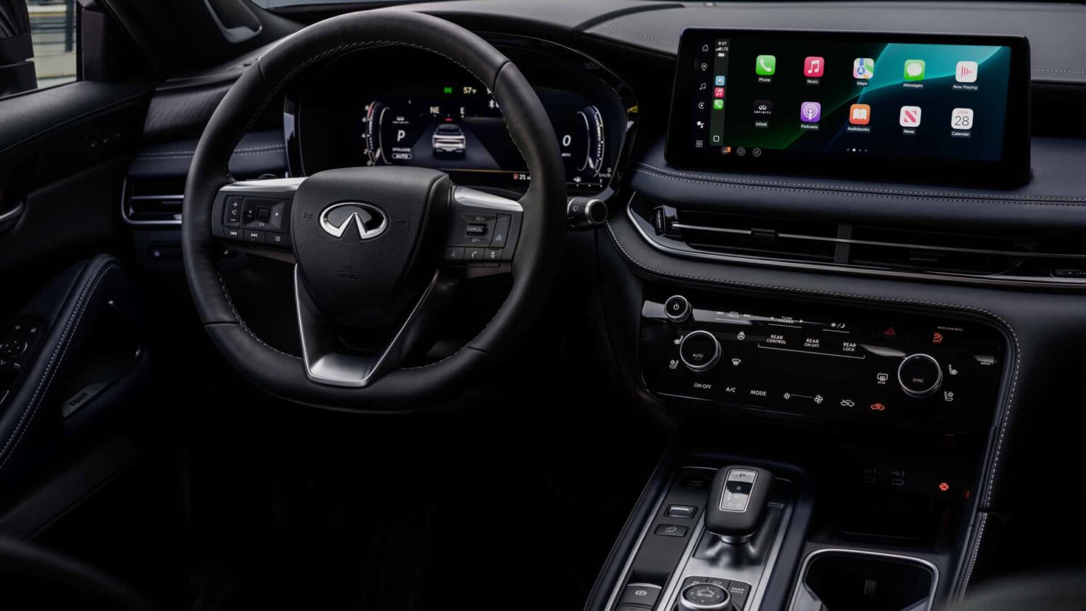 كما تضم عجلة القيادة متعددة الوظائف، وتولي إنفينيتي اهتمامًا واضحًا بتجربة الركاب، وهو ما يظهر من خلال نظام Klipsch Premium Audio المطوّر، والمجهز بـ 16 مكبر صوت موزعة بعناية داخل المقصورة؛ لتقديم جودة صوت عالية.