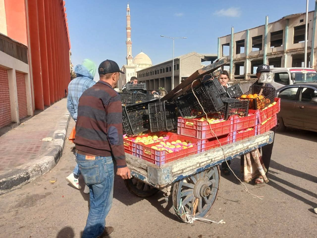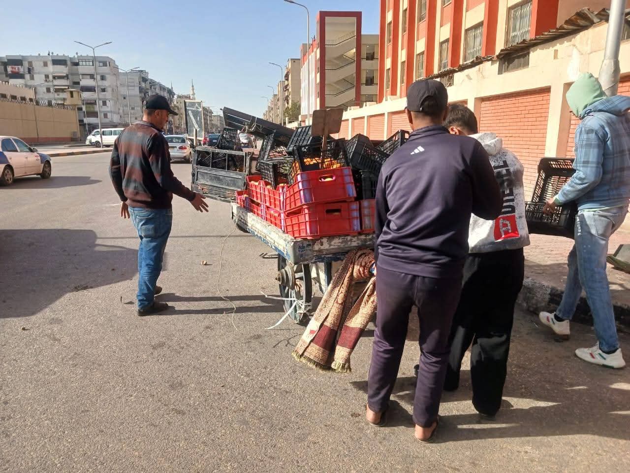 وقد اسفرت جهود الحملة عن ازالة عربات يد وفروشات لبيع الخضار والفاكهة وتند وشماسي و بنوك خشبية وأقفاص بلاستيكية من امام الرصيف العام ونهر الطريق مستخدمين سيارات ومعدات الحى