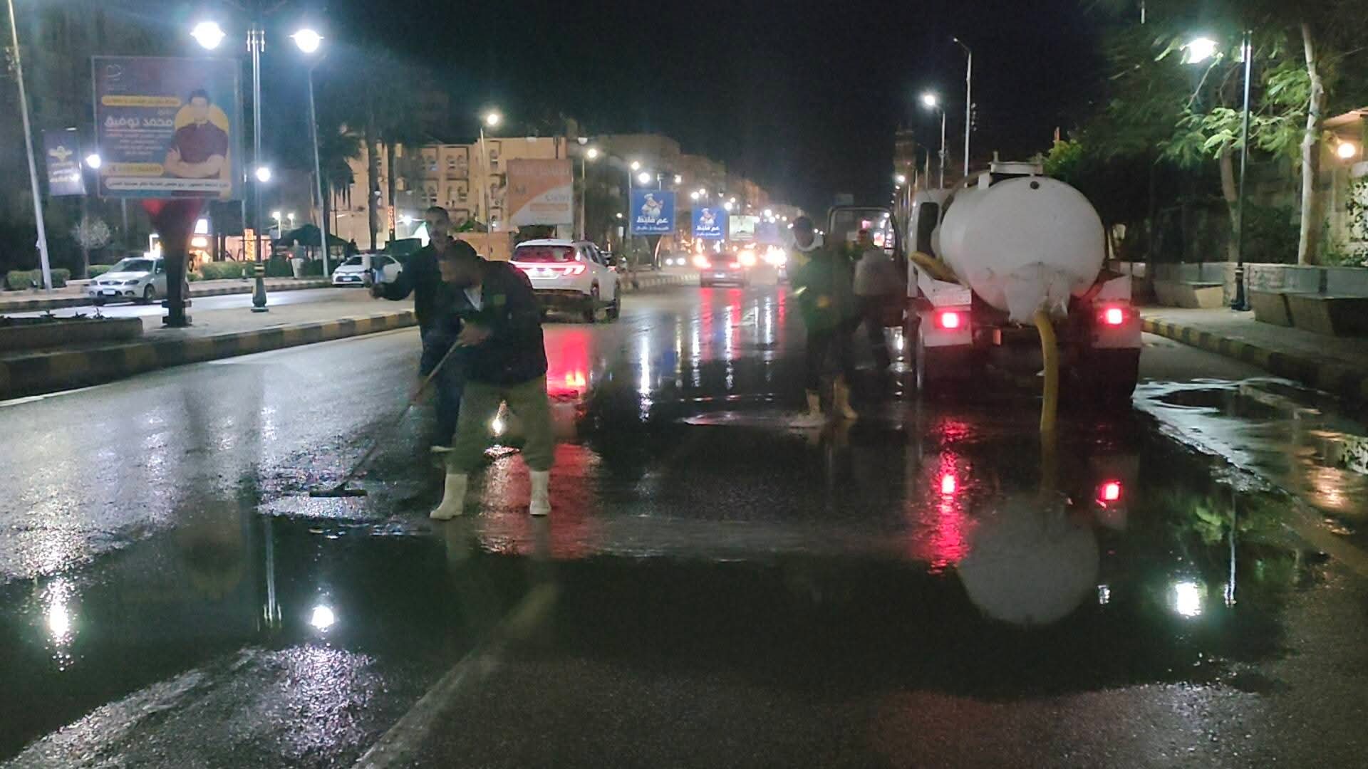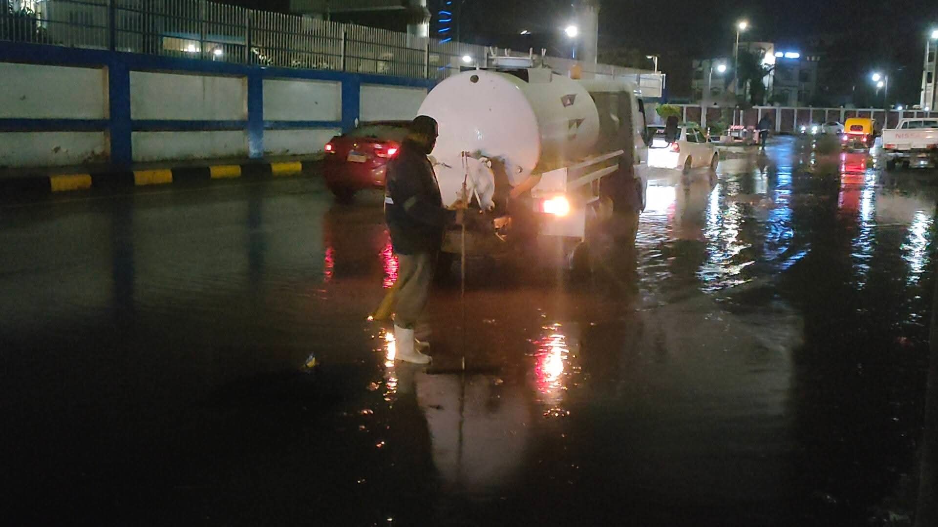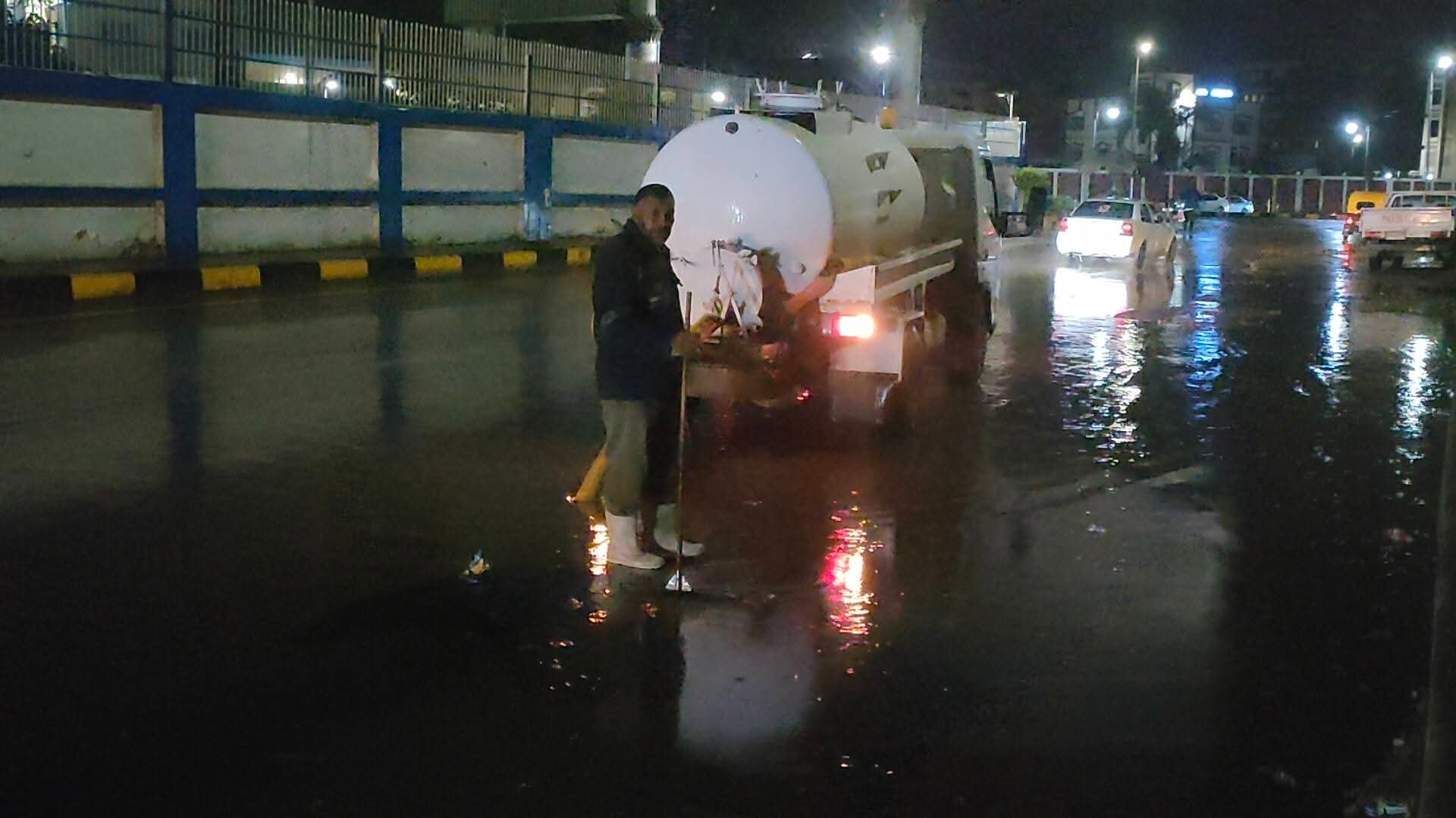 وفي سياق متصل، وتنتشر حاليًا سيارات ومعدات رفع وسحب مياه الأمطار بشكل مستمر في مختلف الشوارع، مع المتابعة اللحظية لحالة الطرق والتدخل السريع فور ظهور أي تجمعات للمياه، وذلك في إطار الحفاظ على سلامة المواطنين وتحقيق السيولة المرورية.