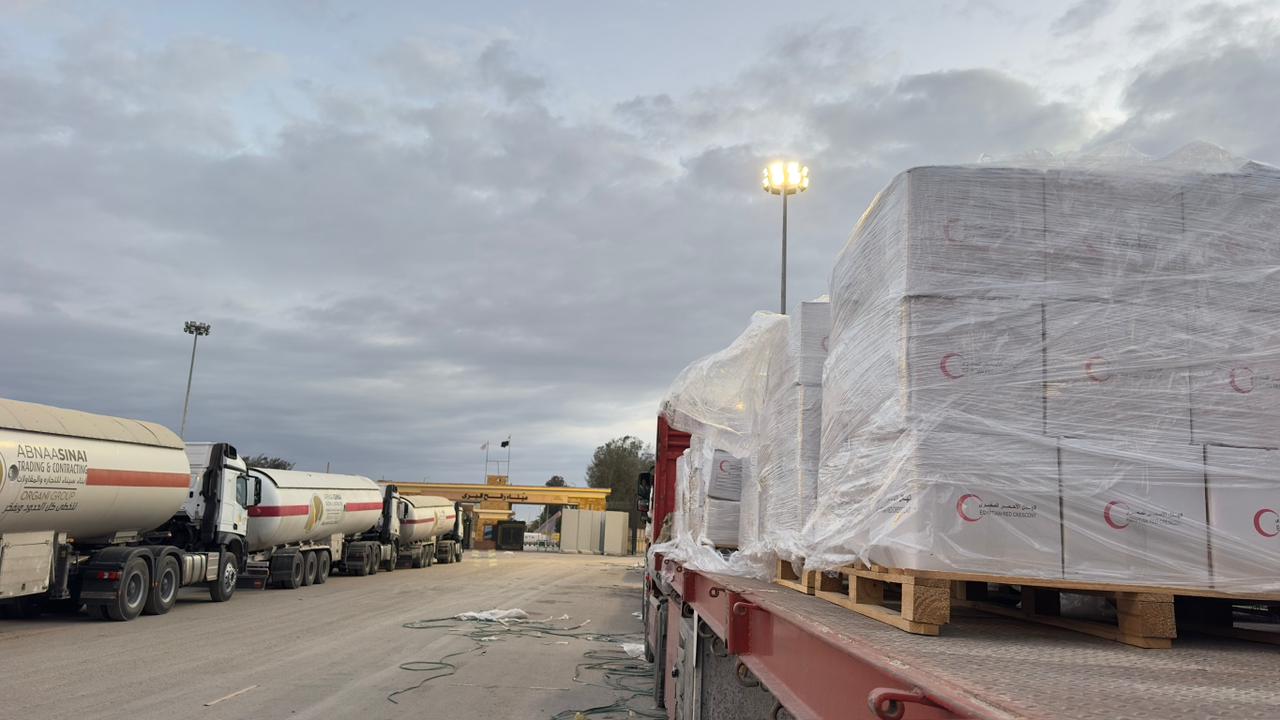 ويتواجد الهلال الأحمر المصري كآلية وطنية لتنسيق وتفويج المساعدات إلى غزة، على الحدود منذ بدء الأزمة حيث لم يتم غلق معبر رفح من الجانب المصري نهائيًا، وواصل تأهبه فى كافة المراكز اللوجستية وجهوده المتواصلة لدخول المساعدات التي بلغت أكثر من نصف مليون طن من المساعدات الإنسانية والإغاثة، وذلك بجهود 65 ألف متطوع بالجمعية.