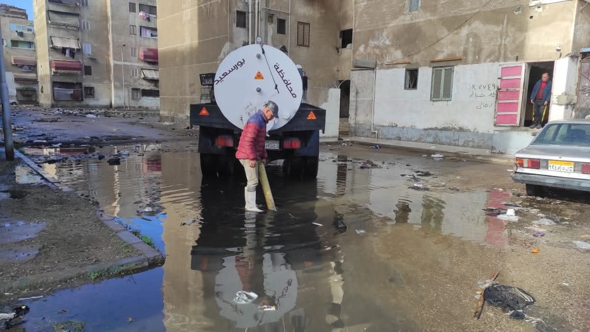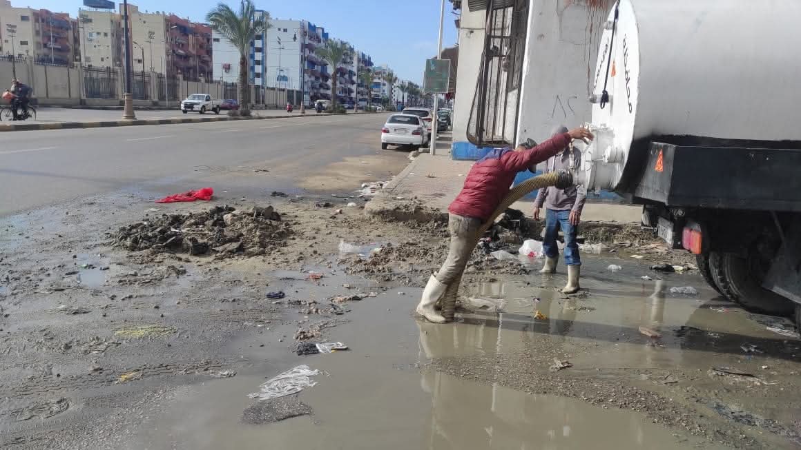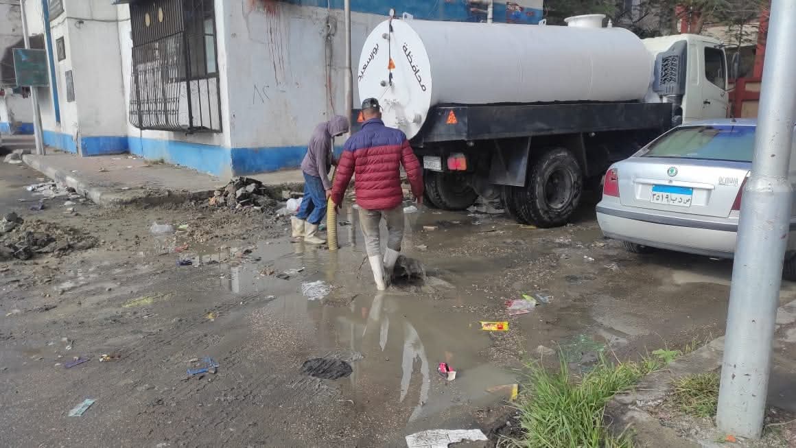 تزامناً مع اضطراب حالة الطقس..تكثيف أعمال سحب مياه الامطار من شوارع ومناطق زهور بورسعيد