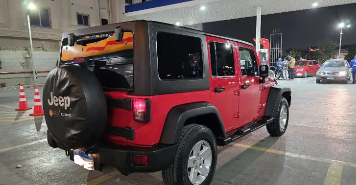 وتحصل سيارة جيب رانجلر موديل 2012 علي قوتها من محرك سعة 3600 سي سي، ومتصل بها علبة تروس أوتوماتيك، وتمكنت من قطع مسافة 136 ألف/كم، وتباع باللون الأحمر، ولا يوجد بالسيارة دهانات داخلية، وبها رخصة سارية .
