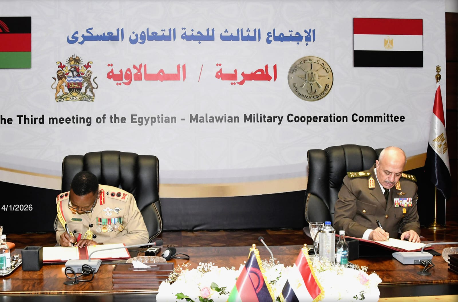 كما ترأس رئيس أركان حرب القوات المسلحة وقائد قوات الدفاع المالاوى، الجلسة الختامية للاجتماع الثالث للجنة التعاون العسكري المصرية المالاوية وقاما بالتوقيع على محضر الجلسة الذى تضمن تنفيذ العديد من الأنشطة والتدريبات لدعم آفاق التعاون العسكرى بين البلدين.