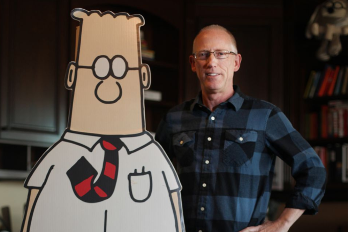 ويُعد سكوت آدامز من أبرز رسامي الكوميكس في الولايات المتحدة، حيث حقق شريط “ديلبرت” شهرة واسعة لتناوله الساخر لثقافة العمل والإدارة في الشركات.
