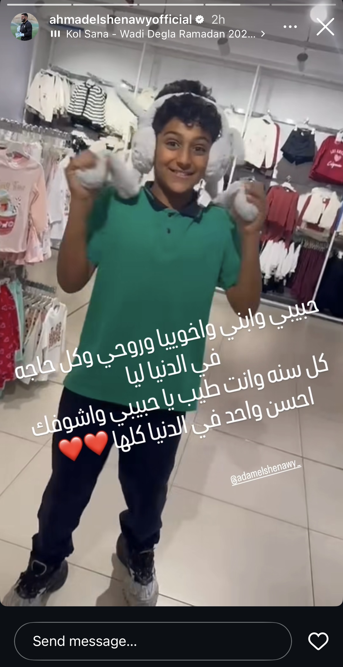 وكتب الشناوي عبر ستوري حسابه الشخصي على انستجرام: “حبيبي وابني وأخويا وروحي وكل حاجة في الدنيا ليا كل سنة وانت طيب يا حبيبي وأشوفك أحسن واحد في الدنيا كلها”.