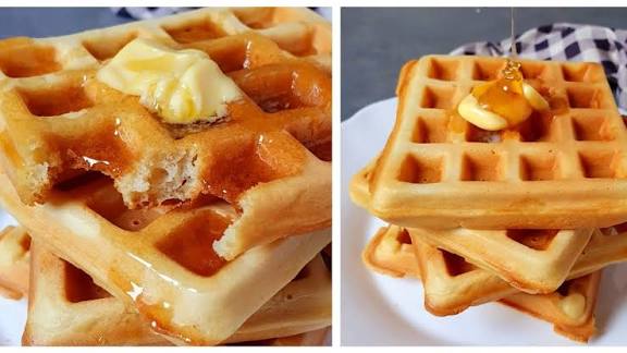 - في النهاية نضع الخليط في جهاز الوافل ونطهي الوافل حتى يصبح لونه ذهبيًا وطعمه مقرمشًا.