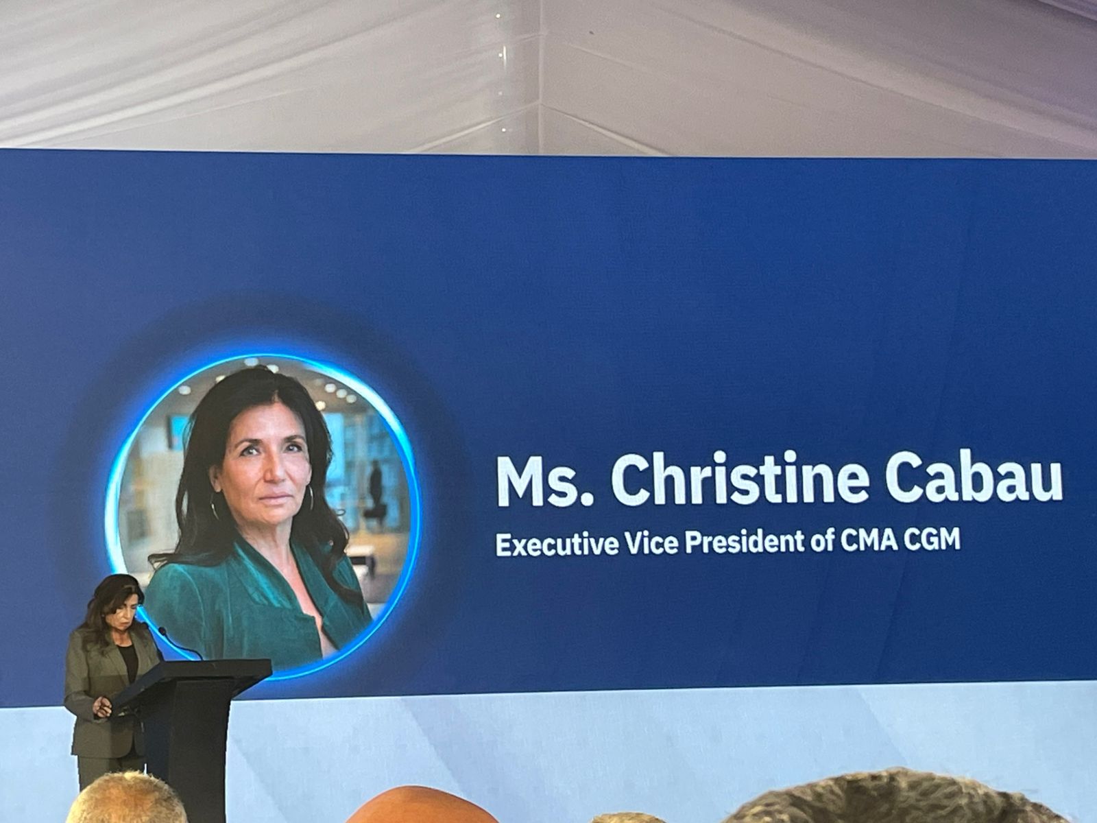 ومن جانبها قالت كريستين كابو الرئيس التنفيذي لشركة CMA لمحطات الحاويات، يشرفني أن أقف أمامك اليوم في احتفالية بدء التشغيل فمنذ عامين كان هذا المكان رؤية طموحة واليوم بتوجيهات الرئيس عبدالفتاح السيسي نحتفل بإطلاق المركز كمحطة عالمية كما انها محطة استثنائية بسبب طول رصيف المحطة وعمقها.