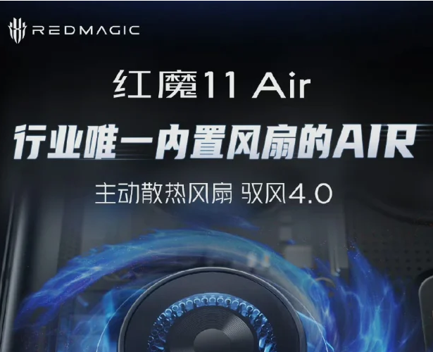 يُقال إن الجهاز، الذي يحمل علامة "Wind Chaser 4.0"، قادر على الوصول إلى سرعة قصوى تبلغ 24000 دورة في الدقيقة، وهي نفس السرعة الموجودة في هاتف RedMagic 11 Pro. وهو مثبت داخل هيكل من الألومنيوم المستخدم في صناعة الطيران، ومبرد بالهواء، أعلى لوحة الدوائر المطبوعة. ورغم أن هذا التصميم يُعدّ شائعًا في الهواتف الذكية، إلا أن ما يُميّز هذا الجهاز أو على الأقل يجعله يبدو مميزًا - هو علامة "Air" التجارية. ويُقال إنه أول هاتف في الصناعة يحمل علامة "Air" التجارية ومزود بمروحة تبريد فعّالة.