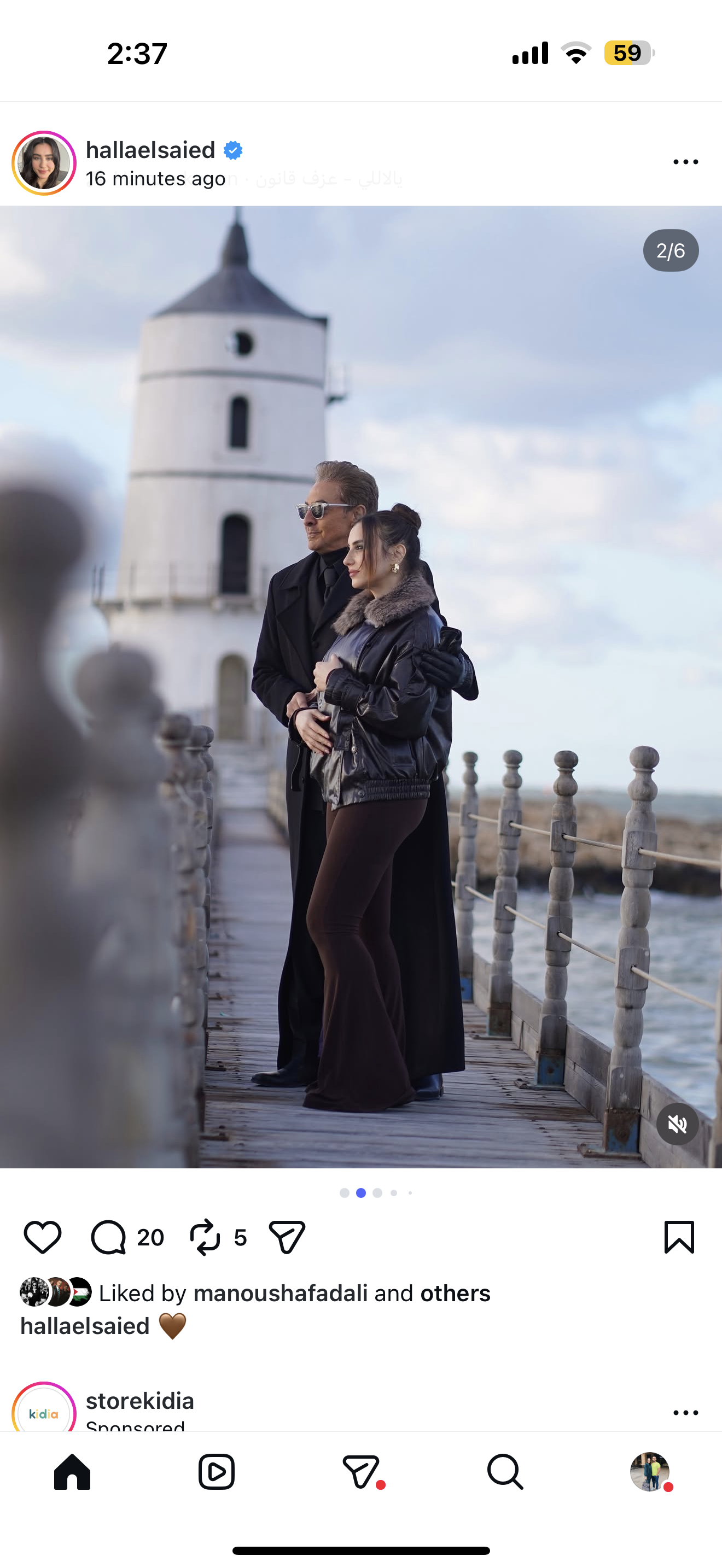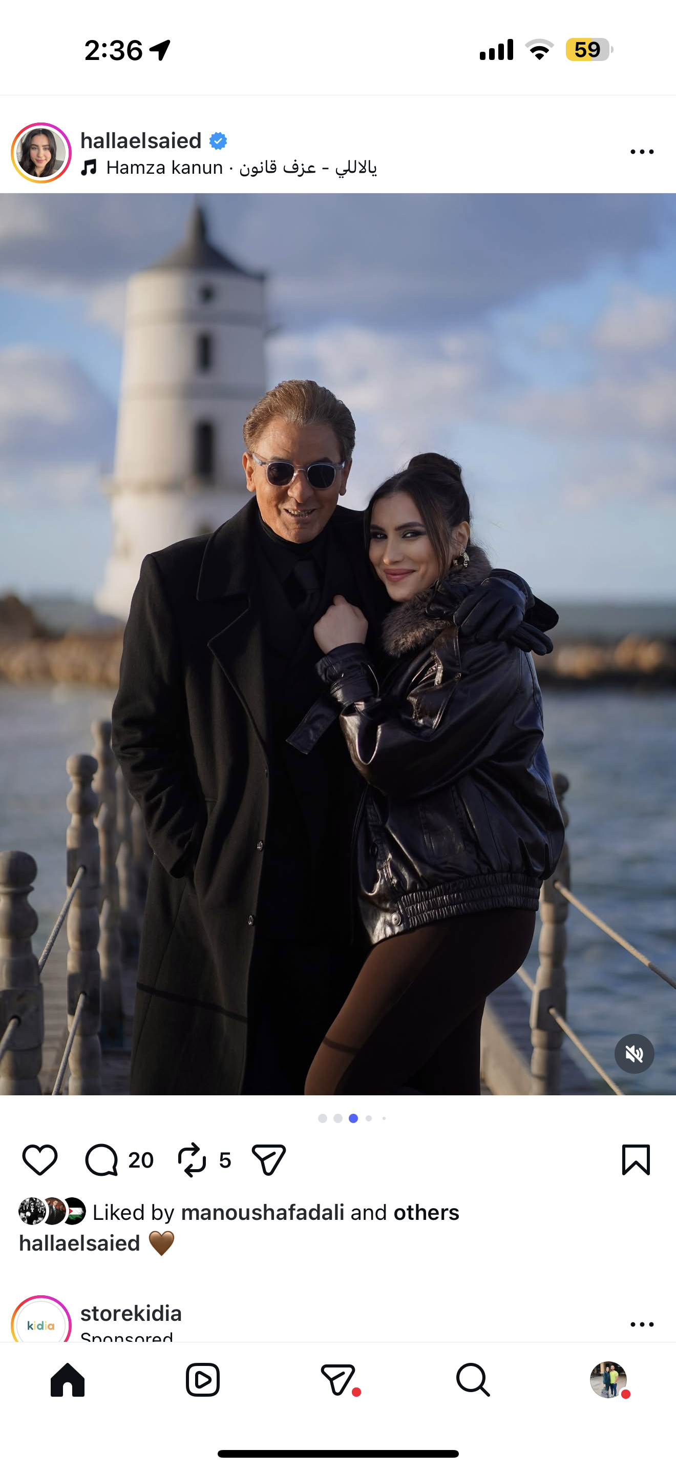 شاركت الفنانة هلا السعيد جمهورها بصورة جديدة عبر حسابها الرسمي على موقع «إنستجرام»، ظهرت خلالها برفقة الفنان فتحي عبد الوهاب، في أجواء شتوية هادئة على أحد المراسي المطلة على البحر.
