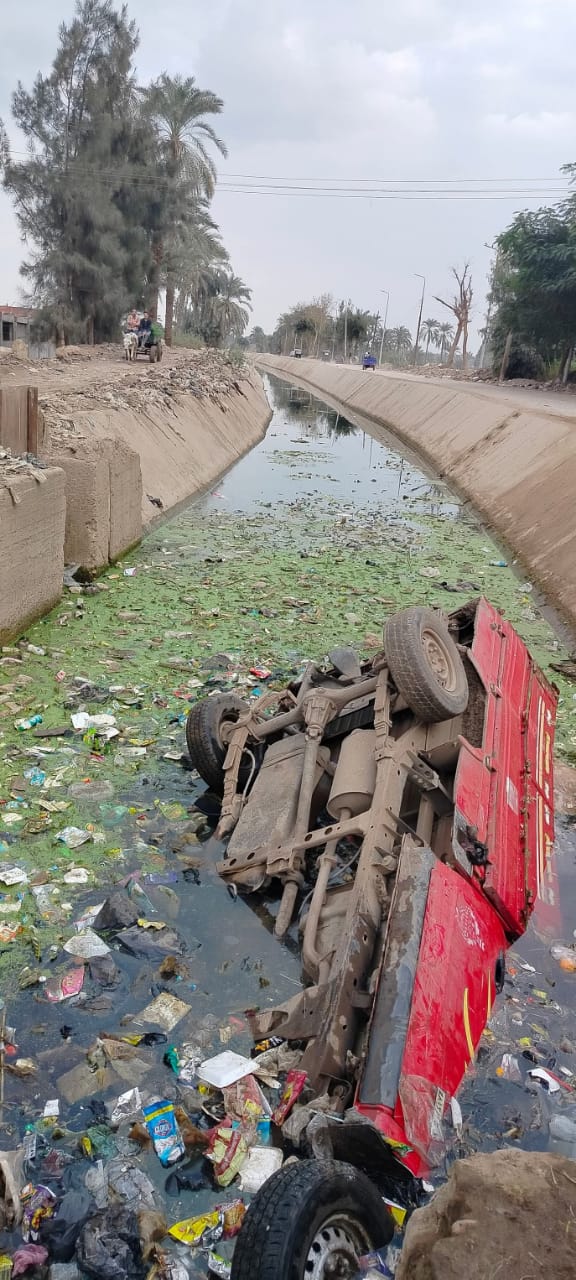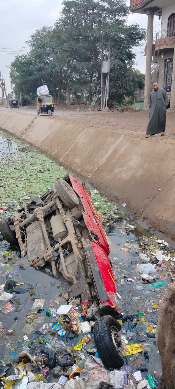 شهدت ترعة قرية الكوم الأحمر بشبين القناطر بمحافظة القليوبية انقلاب سيارة فى ترعة القرية.