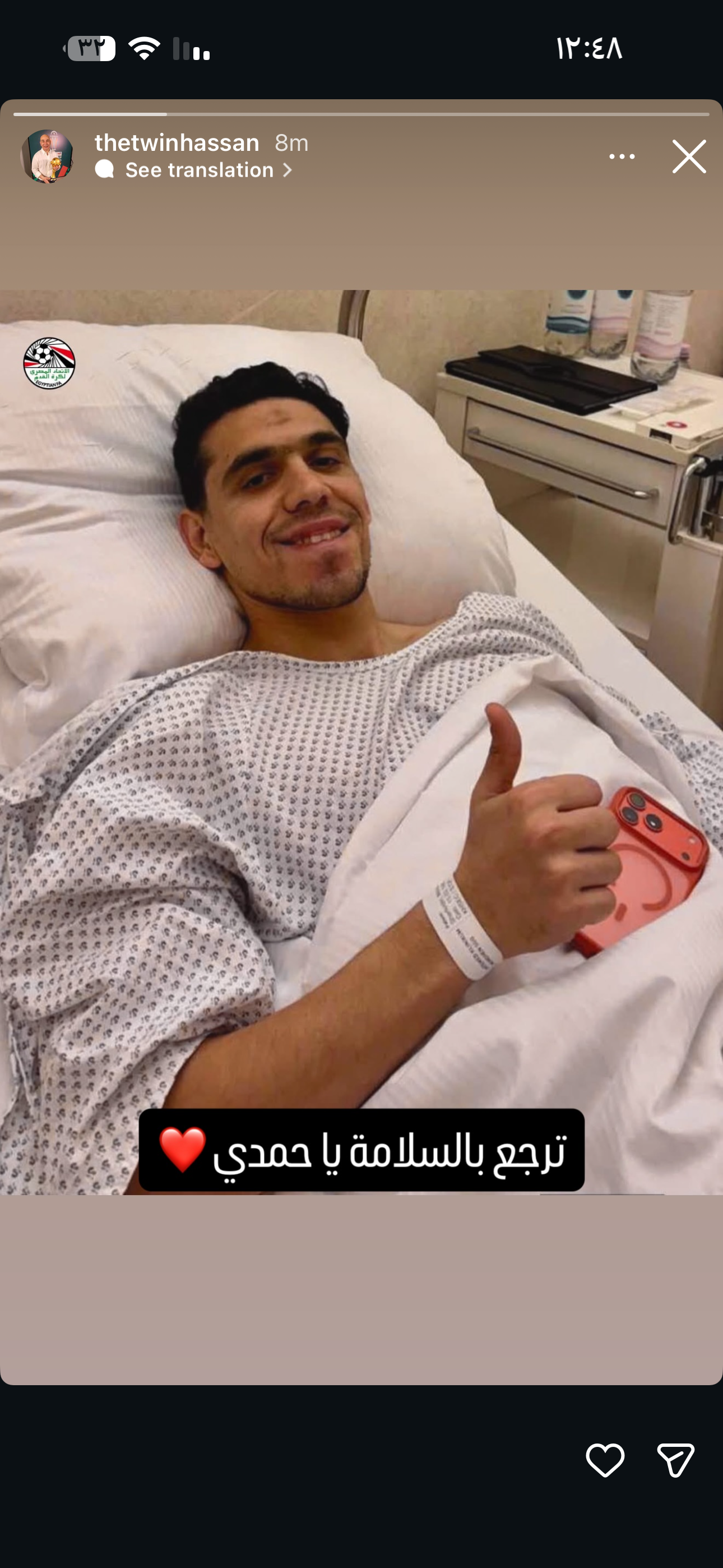 وكتب حسن من خلال حسابه الشخصي انسجرام :" ترجع بالسلامة ياحمدي ".
