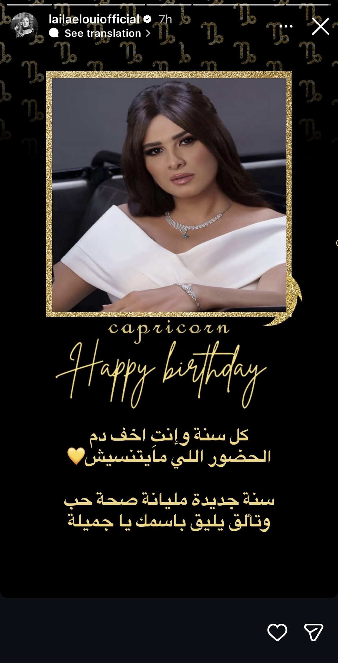 وكتبت ليلى علوي عبر الاستوري: “كل سنة وانتي اخف دم الحضور اللي ميتنسيش سنة جديدة مليانة صحة وحب وتألق يليق باسمك يا جميلة ”.