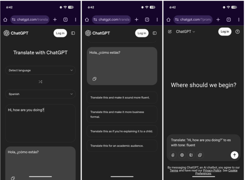أما طريقة الاستخدام، فتبدأ بزيارة صفحة ChatGPT Translate عبر المتصفح، حيث تظهر واجهة تحتوي على صندوقين متجاورين، يكتب المستخدم النص في الصندوق الأيسر، دون الحاجة لتحديد اللغة، إذ يتولى الذكاء الاصطناعي اكتشافها تلقائيا، ثم يختار لغة الترجمة المطلوبة، لتظهر النتيجة فورا بصيغة واضحة ومباشرة.
