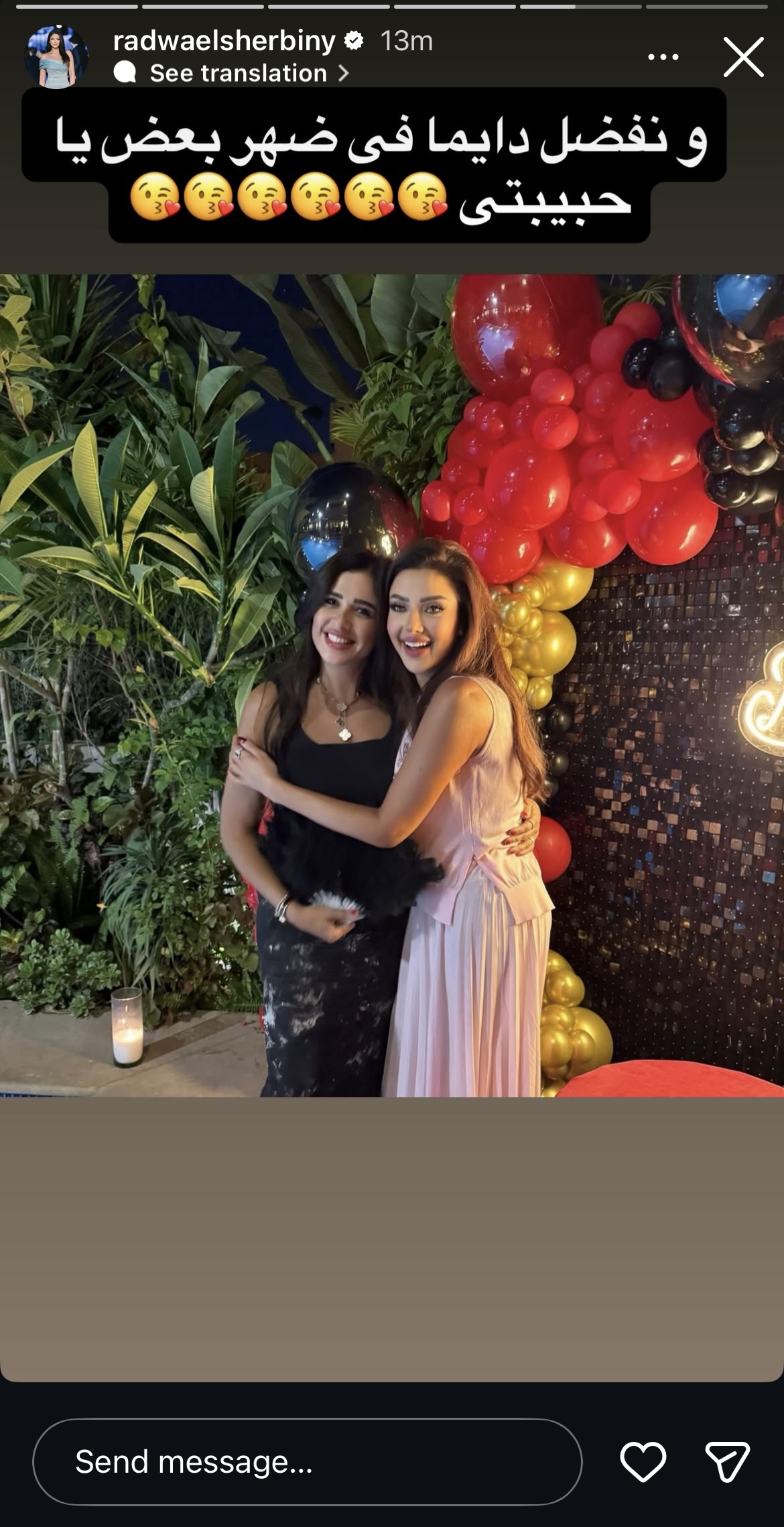 وكتبت رضوى الشربيني عبر حسابها الشخصي على انستجرام: “كل سنة وانتي طيبة يا حبيبتي وأختي وصاحبتي، عقبال العمر كله في نجاح وسعادة وفرحة تستاهل قلبك”.