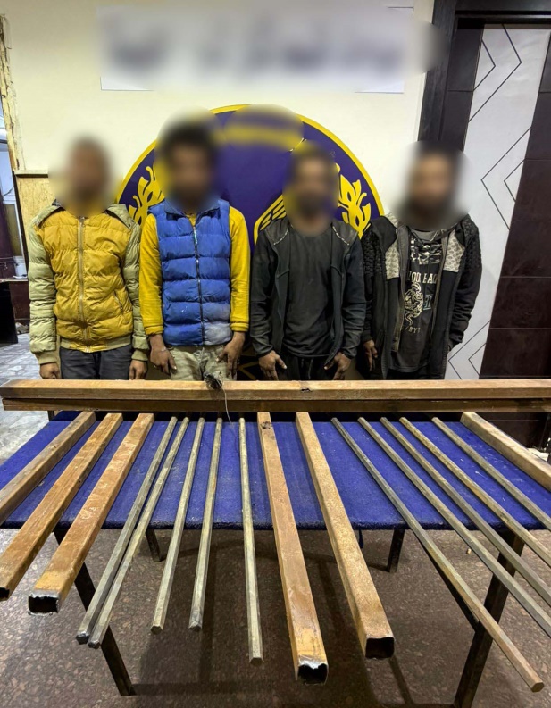 بالفحص تبين عدم ورود بلاغات فى هذا الشأن ، وأمكن تحديد وضبط مرتكبى الواقعة (4 أشخاص "لـ 3 منهم معلومات جنائية" – مقيمون بنطاق محافظتى "القاهرة ، القليوبية") ، وبمواجهتهم اعترفوا بارتكاب الواقعة تمهيداً للتصرف فيها بالبيع، وتم بإرشادهم ضبط (18 قطعة حديدية وزنت حوالى 100 كيلو جرام).