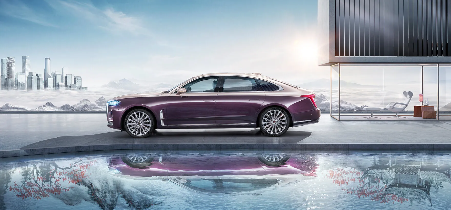 يحمل التصميم الخارجي لهونشي H9 ملامح واضحة من الفخامة الهادئة، حيث يبرز الشبك الأمامي الكبير مع خطوط منحوتة بعناية على غطاء المحرك، ما يعزز الطابع الرسمي للسيارة.