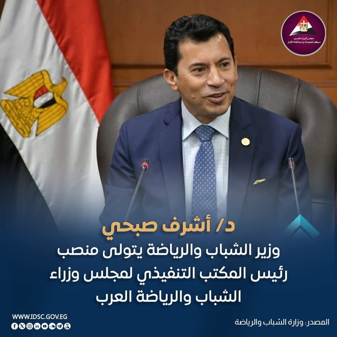 ويأتي انتخاب الدكتور أشرف صبحي تتويجًا للجهود المصرية المستمرة لتعزيز العمل العربي المشترك، ودعم السياسات والبرامج التي تستهدف تمكين الشباب العربي، وتطوير منظومة الرياضة باعتبارها أحد محركات التنمية وبناء الوعي وتعزيز التقارب بين الشعوب العربية.