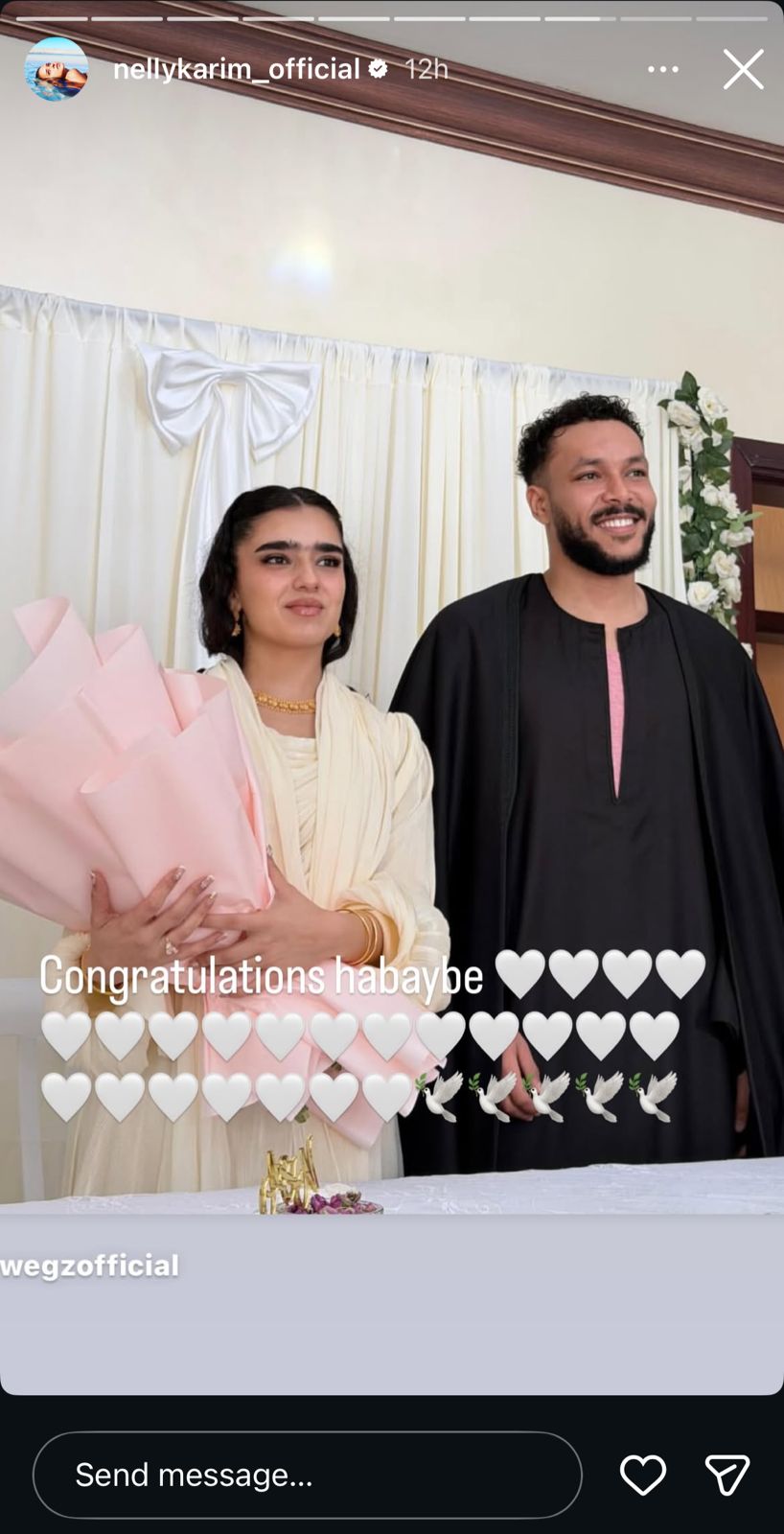 هنأت الفنانة نيللي كريم، مطرب الراب ويجز وزوجته نور العزاوي، بزواجهم في أحدث ظهور عبر حسابها الشخصي على انستجرام.