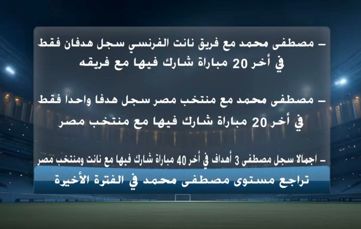 وكتب الناقد الرياضي خالد طلعت عبر صفحته على موقع التواصل الاجتماعي فيسبوك:"بالارقام .. تراجع مستوي مصطفى محمد".