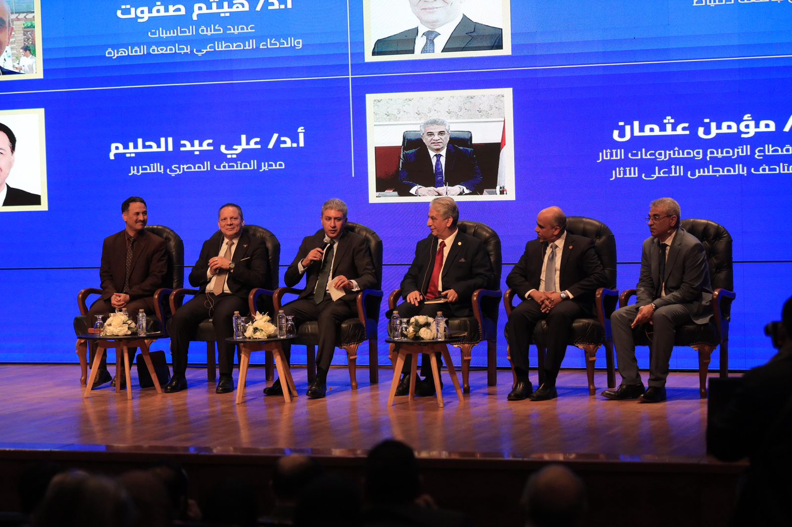 وترأس الجلسة الدكتور محسن صالح، عميد كلية الآثار بجامعة القاهرة، وشارك بها نخبة من الخبراء والمتخصصين، وهم الدكتور حمدان ربيع رئيس جامعة دمياط، والدكتور هيثم صفوت عميد كلية الحاسبات والذكاء الاصطناعي بجامعة القاهرة، ومؤمن عثمان رئيس قطاع الترميم ومشروعات الآثار والمتاحف بالمجلس الأعلى للآثار، والدكتور علي عبد الحليم مدير المتحف المصري بالتحرير.