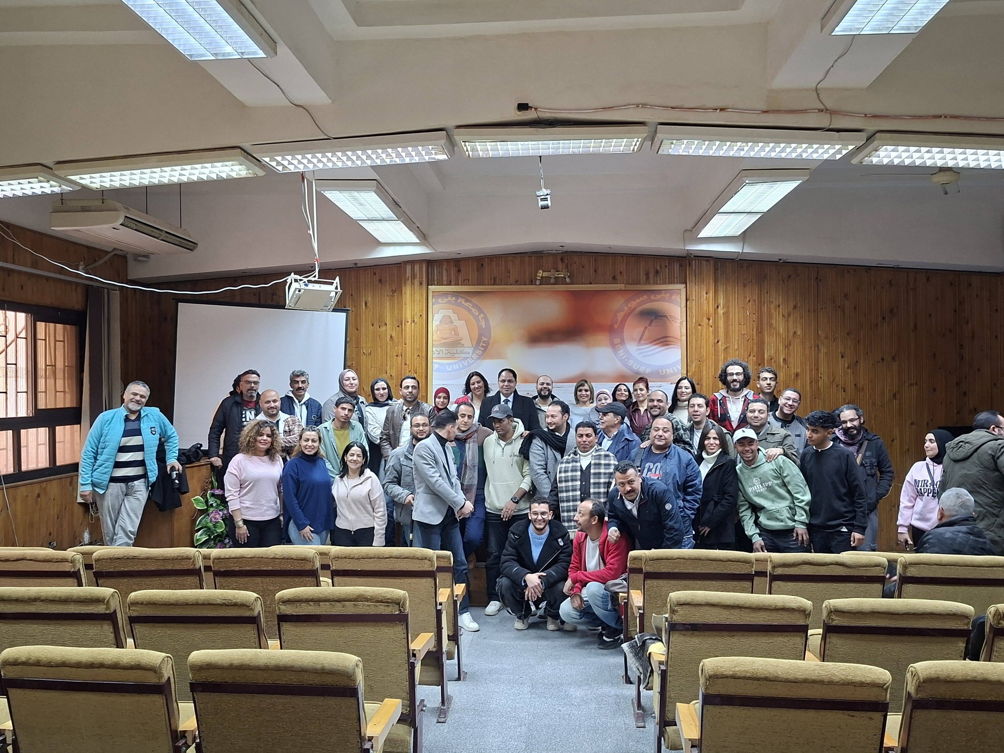 يأتي ذلك تحت رعاية أ.د طارق علي القائم بأعمال رئيس جامعة بني سويف وأ.د عزة جوهري عميد كلية الآداب بالجامعة.