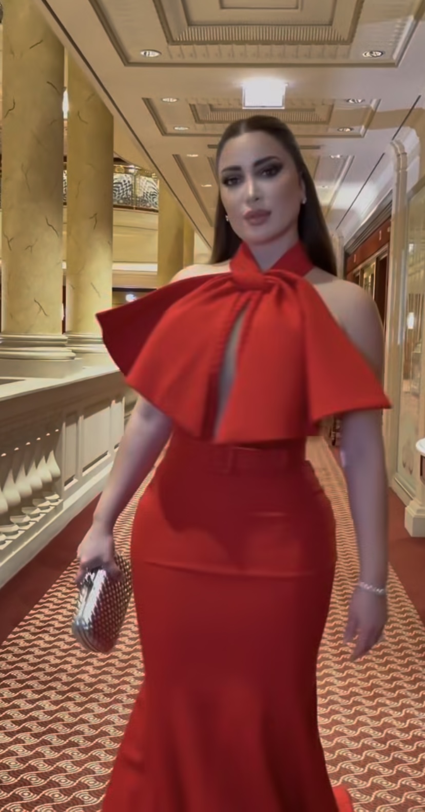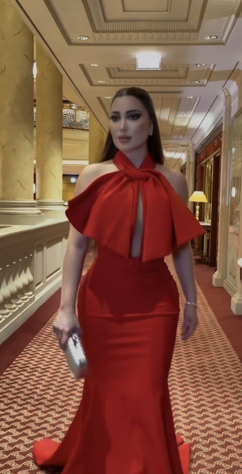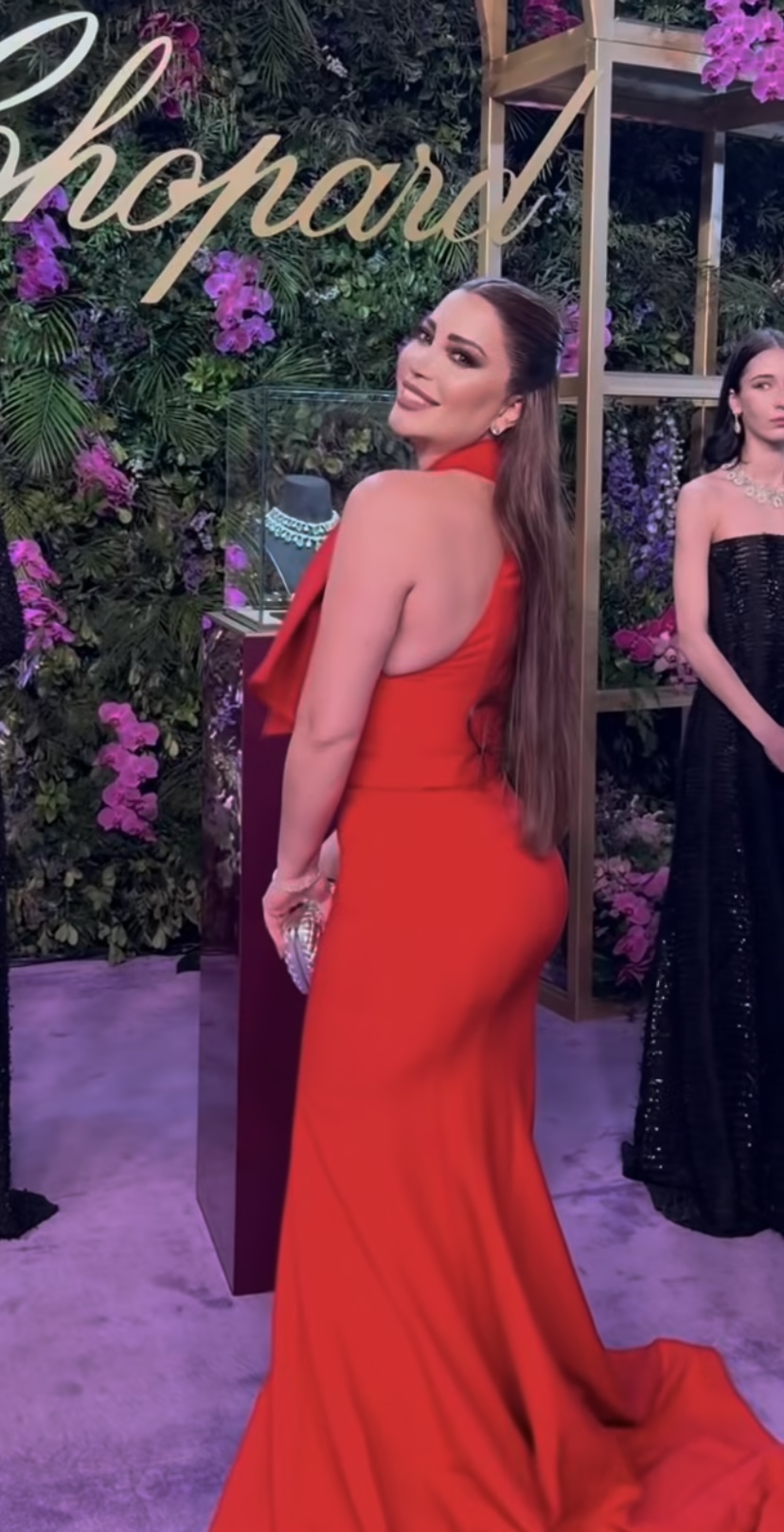 وظهرت نسرين طافش بفستان أحمر ناري خطف الأنظار، وشاركت مقطع فيديو من كواليس الحفل عبر حسابها على إنستجرام.