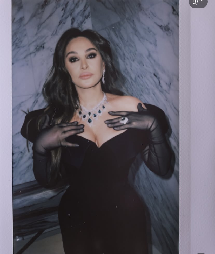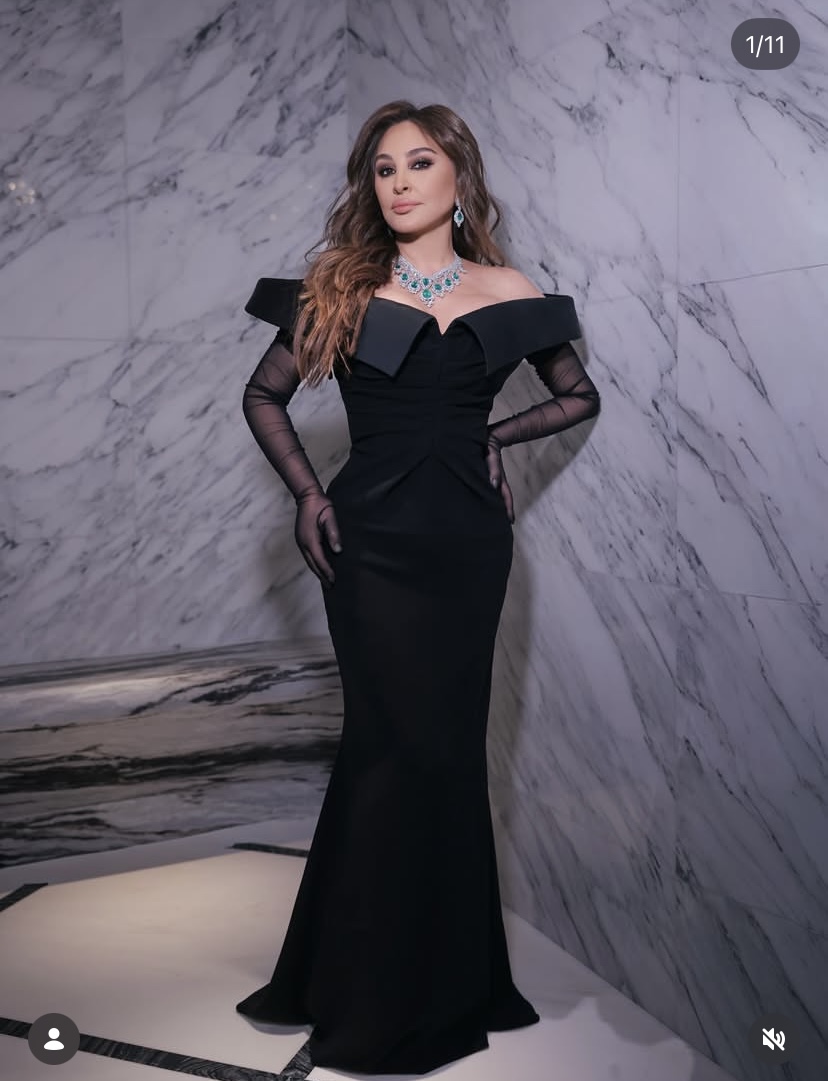 وظهرت إليسا مرتدية فستانًا أنيقًا باللون الأسود قبل توجهها إلى مسرح الحفل.