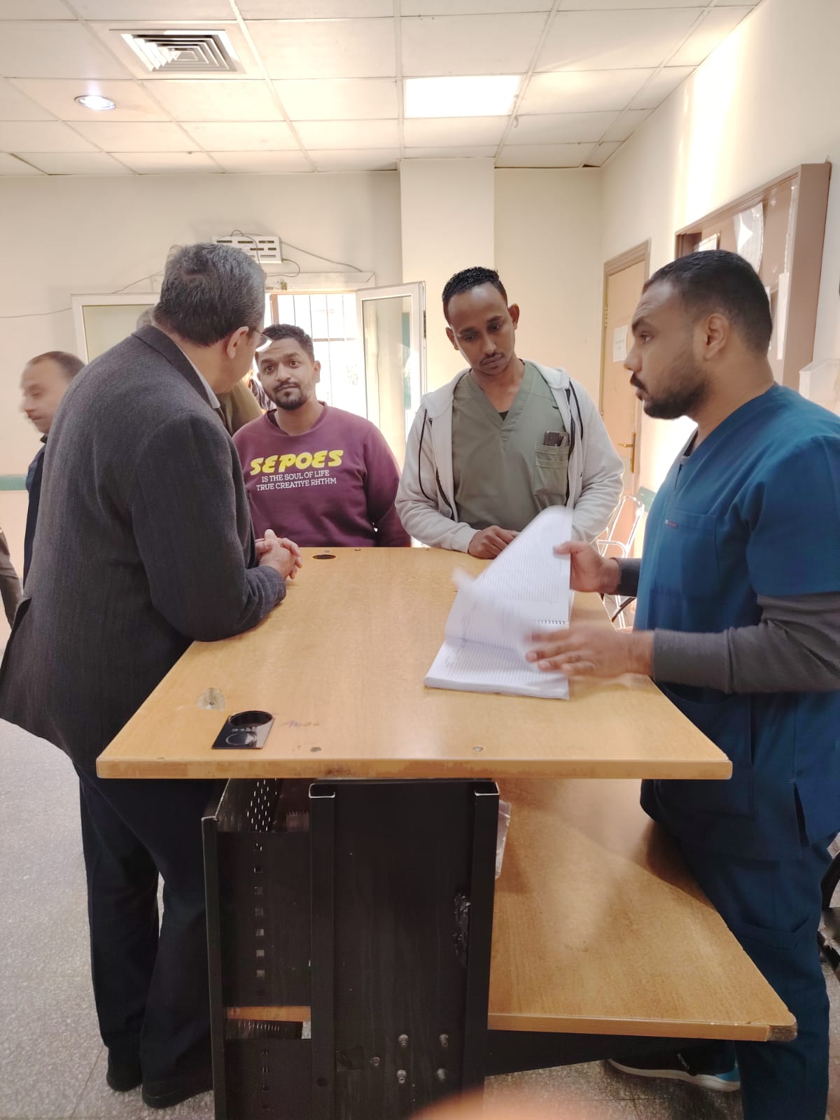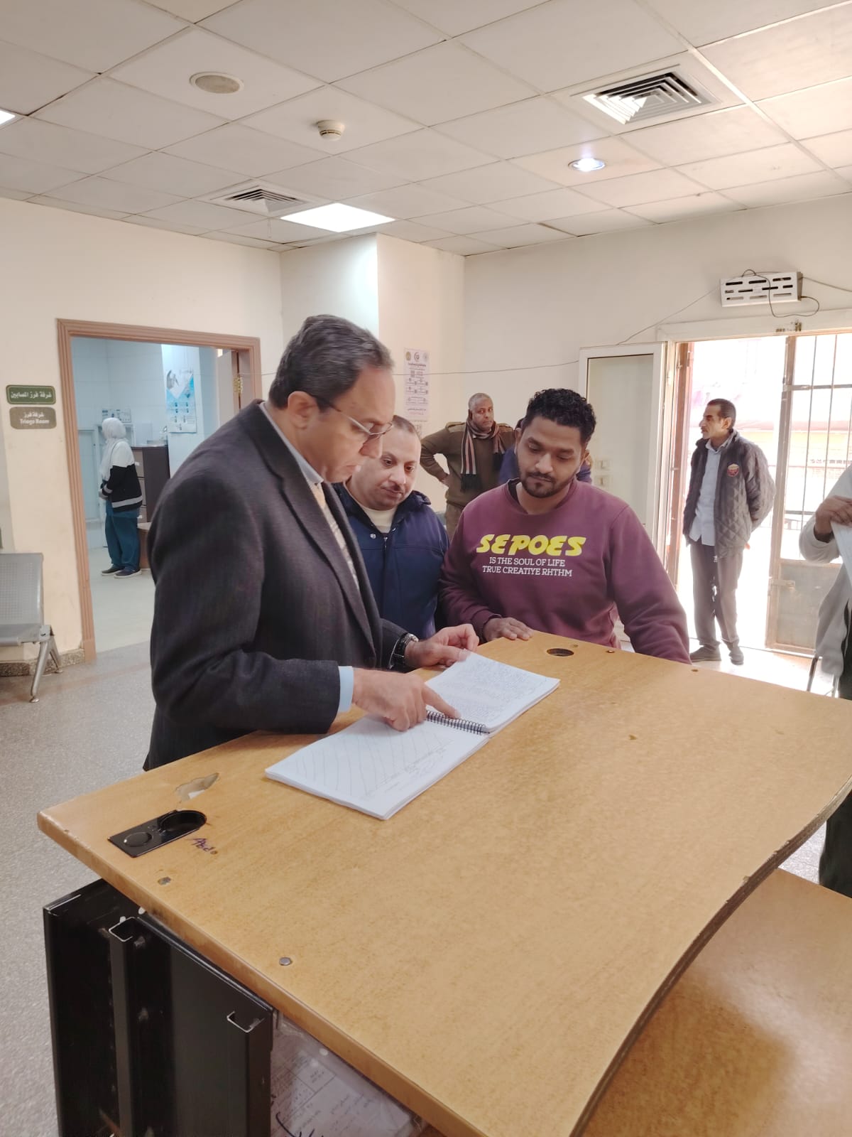 واستمع عبدالحليم، إلى شكاوى المرضى وذويهم المتواجدين بالمستشفى، موجّهًا بسرعة تذليل أي معوقات قد تؤثر على جودة الخدمة الصحية.
