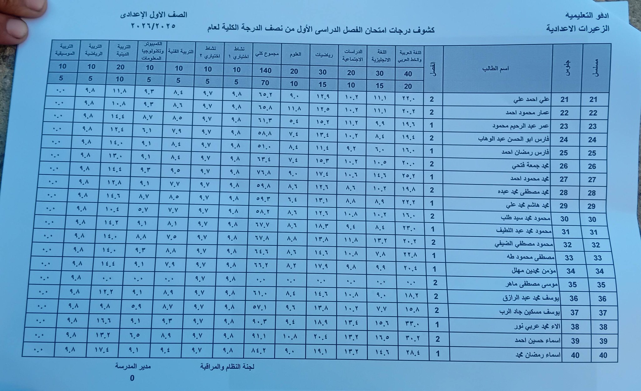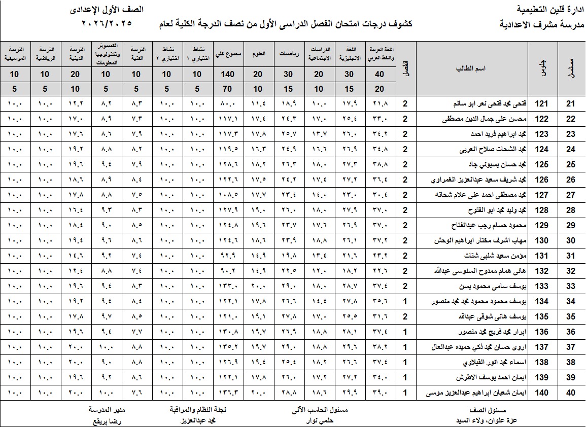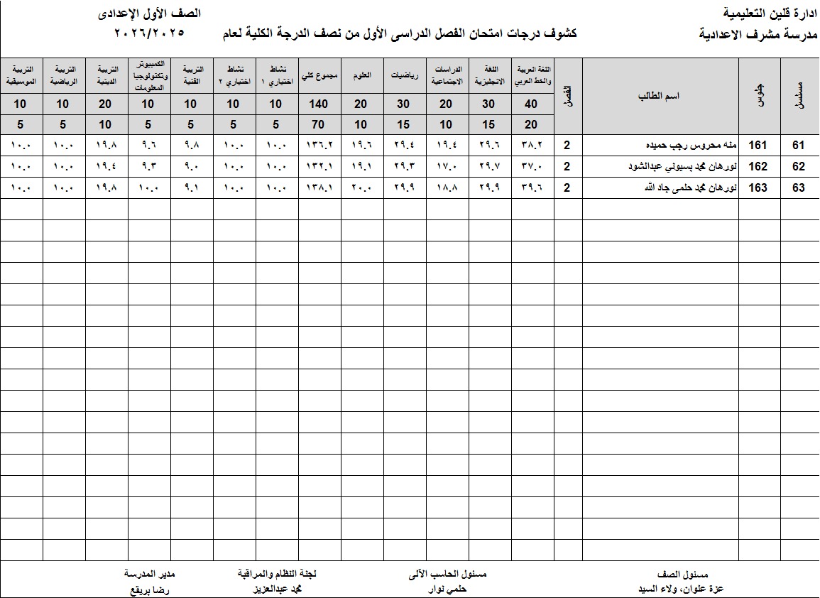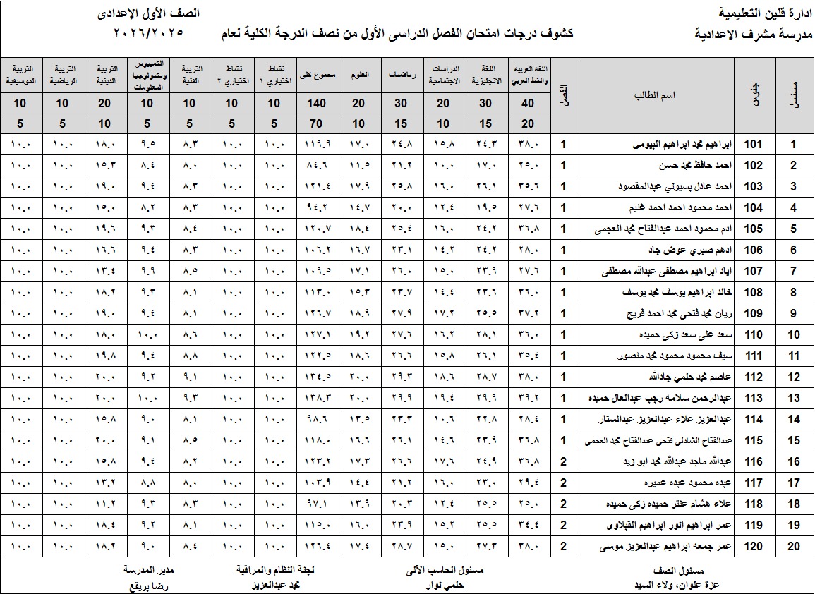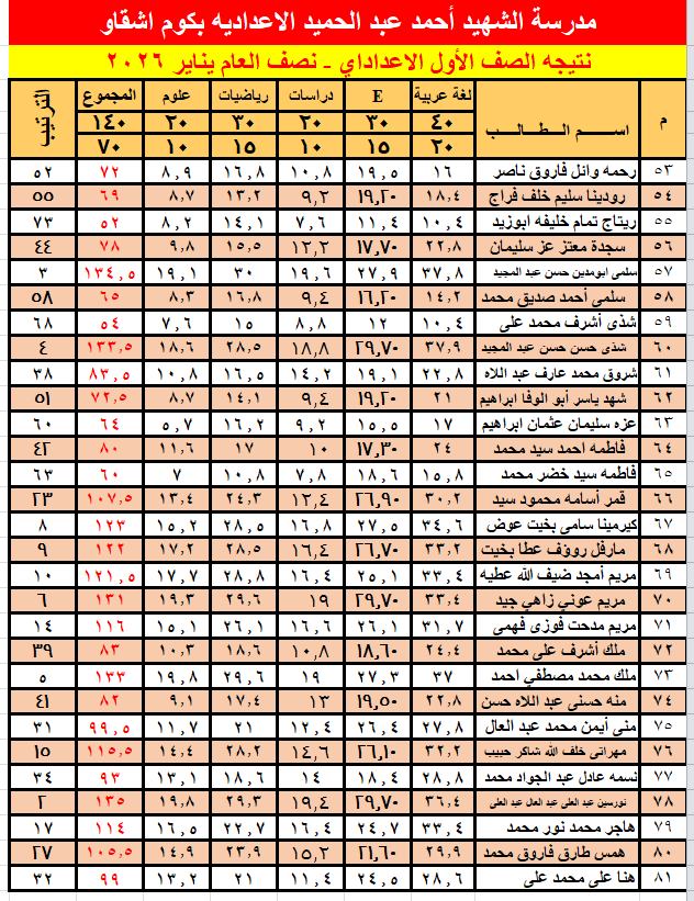 وقامت الصفحات الرسمية للمدارس على فيس بوك ، بإعلان ظهور نتيجة الصف الأول الإعدادي برقم الجلوس والاسم 2026 في شكل قوائم كاملة بالدرجات في جميع المواد