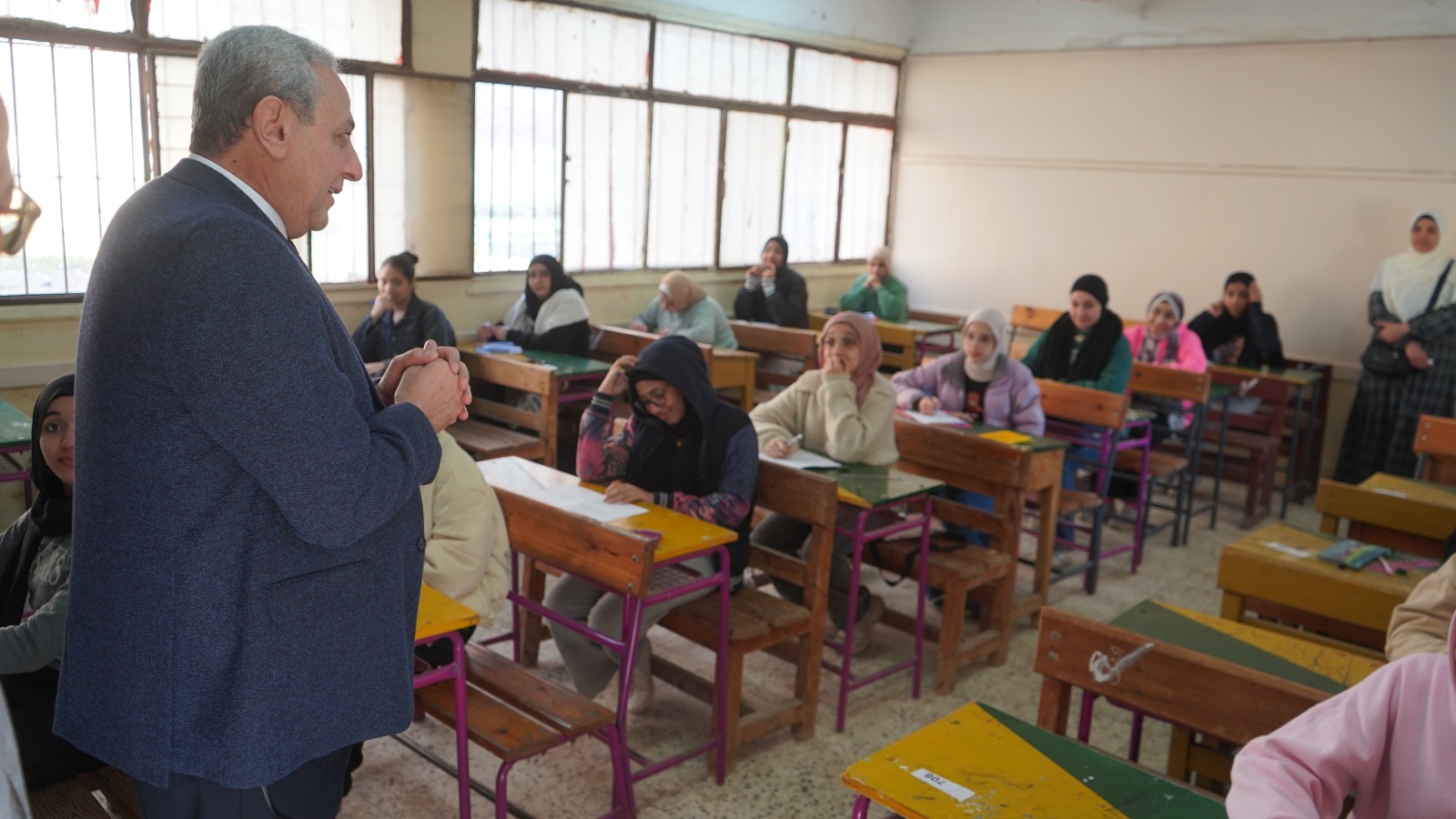 وخلال الجولة، حرص المحافظ على التفاعل المباشر مع الطلاب داخل اللجان، واستفسر منهم عن مستوى الامتحان ومدى وضوح الأسئلة ومطابقتها للمناهج الدراسية المقررة، حيث أكد الطلاب أن الامتحان جاء في مستوى الطالب المتوسط، وأن الأسئلة واضحة ومباشرة.