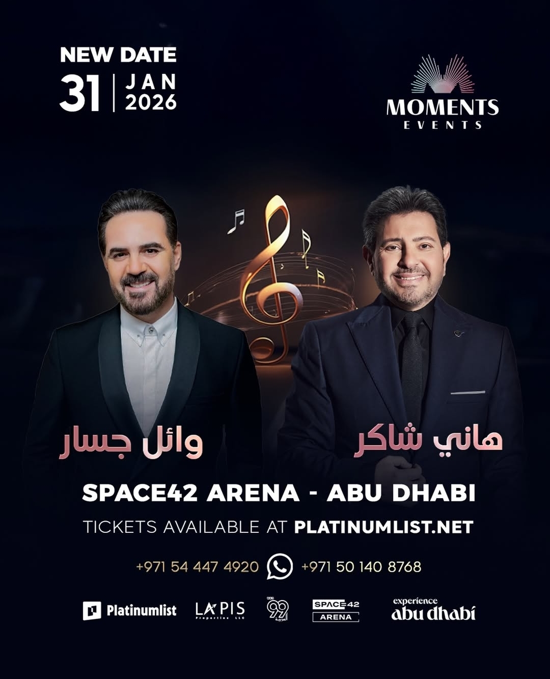 وجاءت أسعار تذاكر حفل هاني شاكر، ووائل جسار، بين الفئات السعرية التالية: (95 درهم إماراتي، 195 درهم إماراتي، 595 درهم إماراتي، 795 درهم إماراتي).