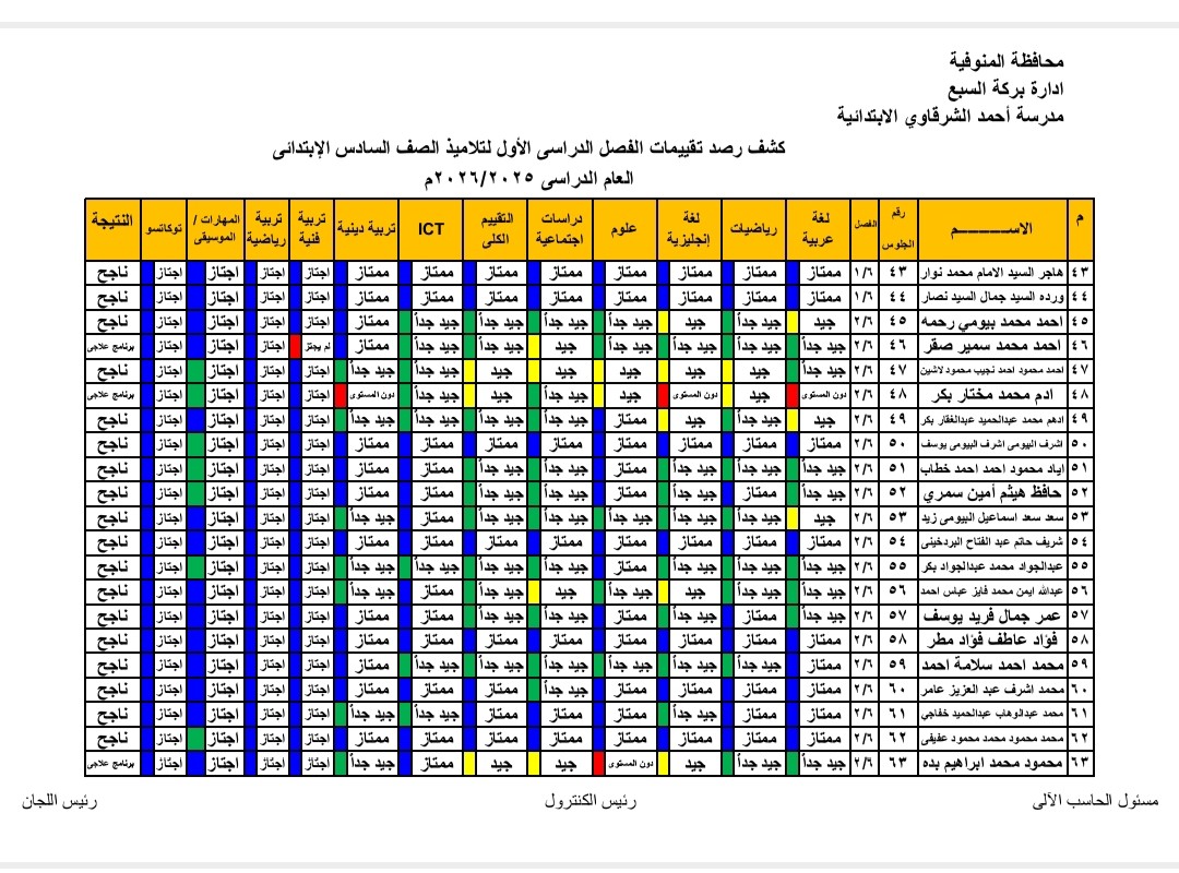نتيجة الصف السادس الابتدائي برقم الجلوس والاسم 2026 تظهر في المدارس تباعا بمجرد الانتهاء من أعمال التصحيح ورصد الدرجات في الكنترولات .