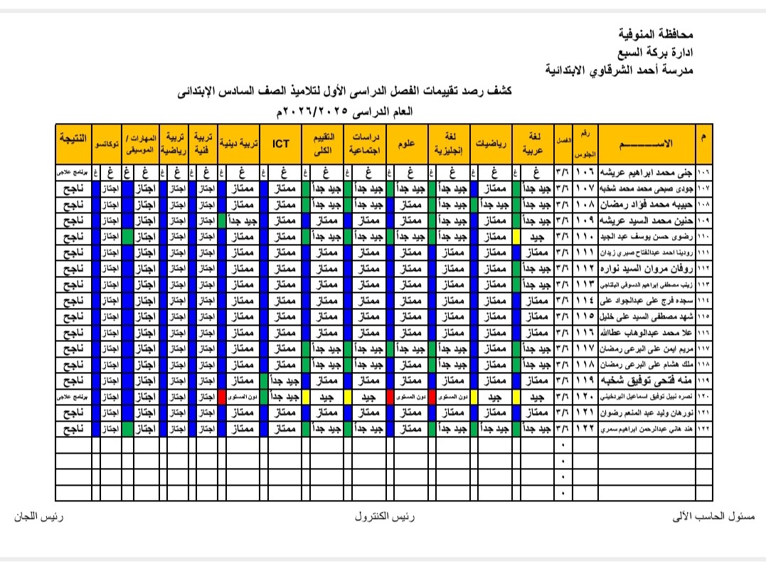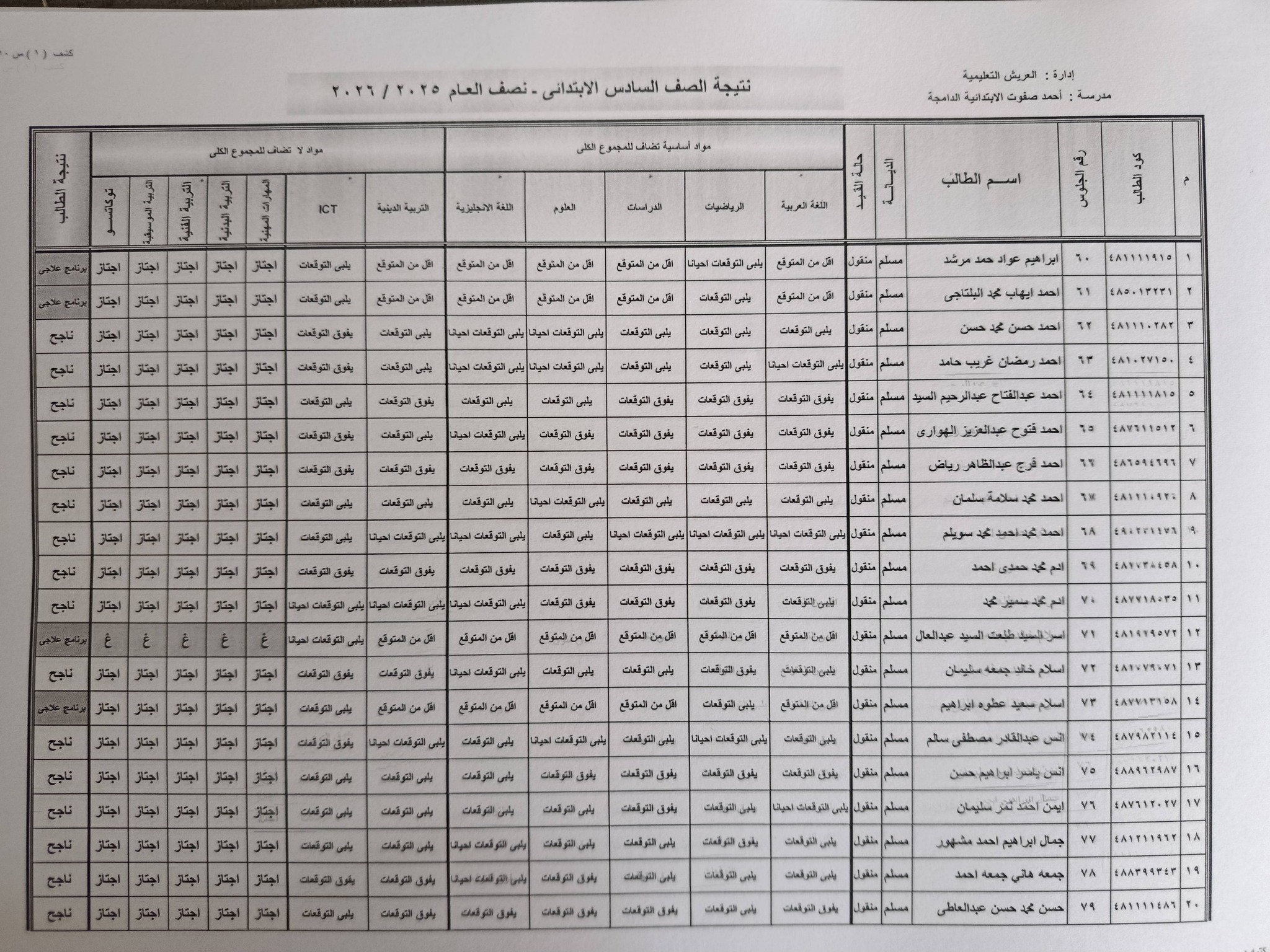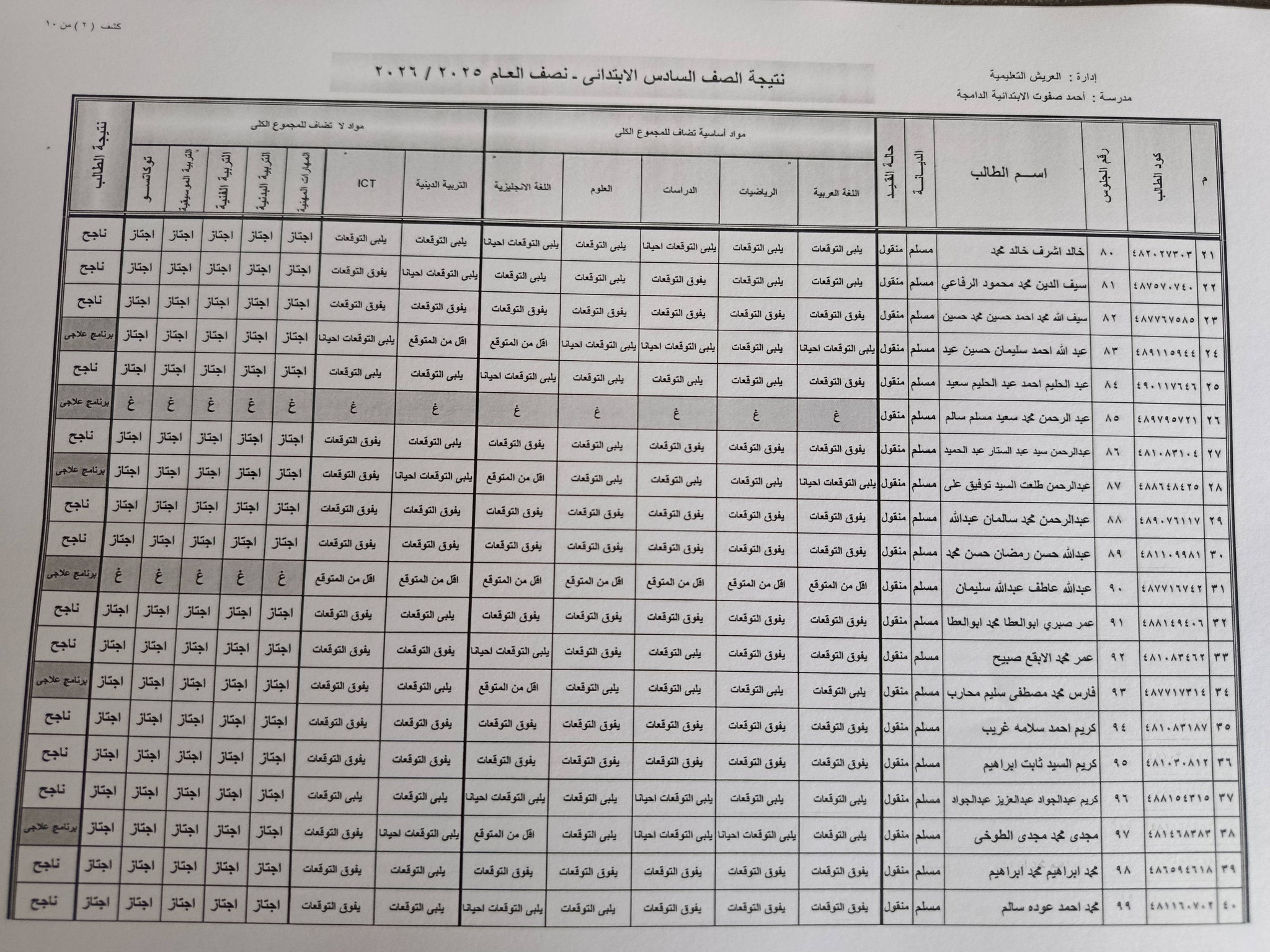 ظهرت الآن في بعض المدارس نتيجة الصف السادس الابتدائي برقم الجلوس والاسم 2026 .
