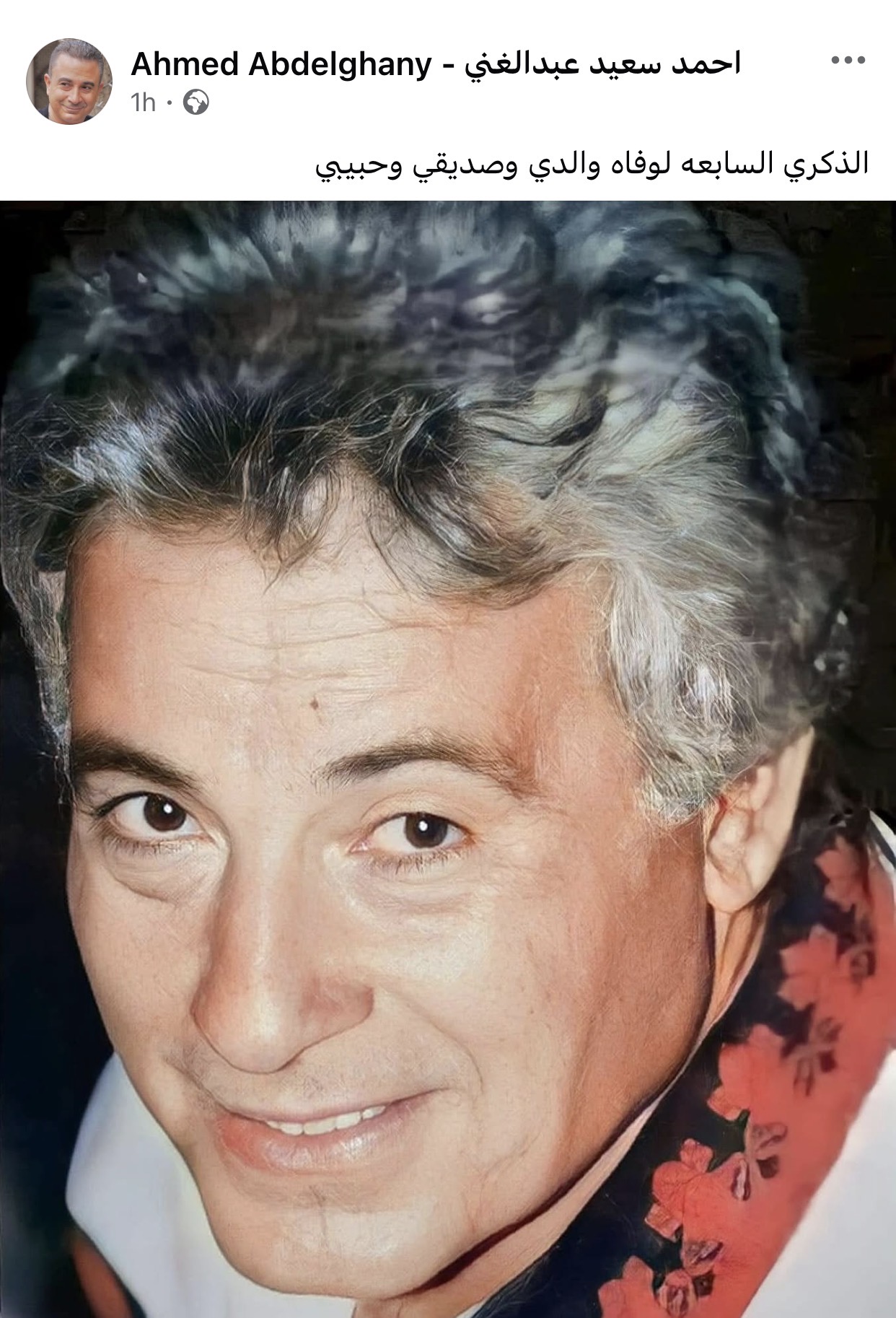 ونشر أحمد سعيد عبد الغني، صورة لوالده، وعلق عليها قائلًا: “الذكرى السابعة لوفاة والدي وصديقي وحبيبي”.
