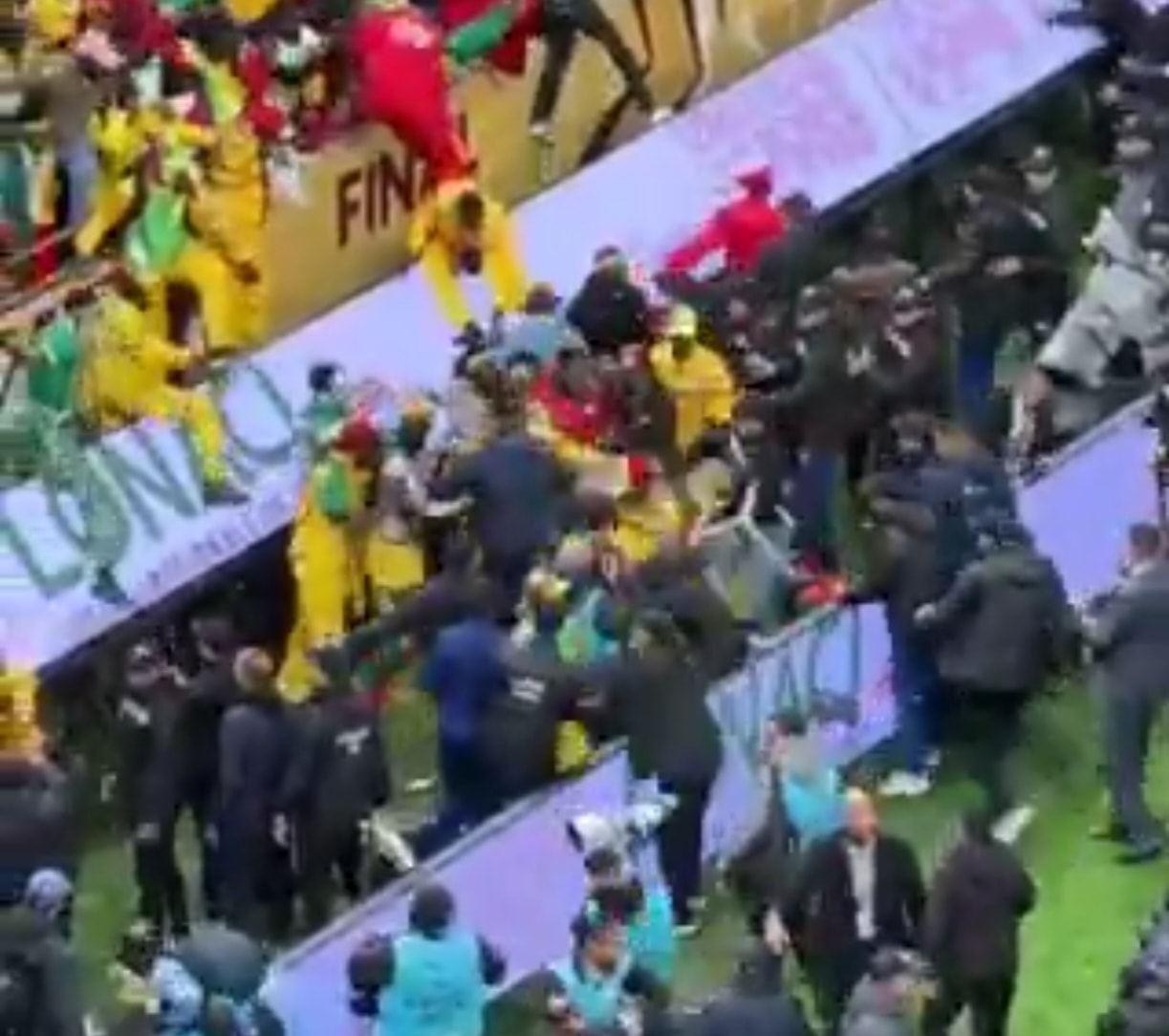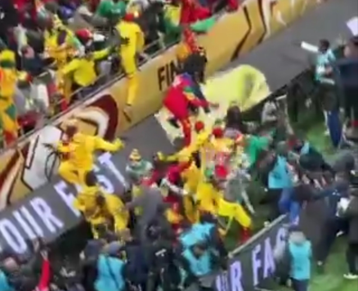 وعقب إحتساب حكم اللقاء ركلة جزاء لصالح المغرب دخلت جماهير السنغال فى اشتباكات مع نظيرتها المغربية.