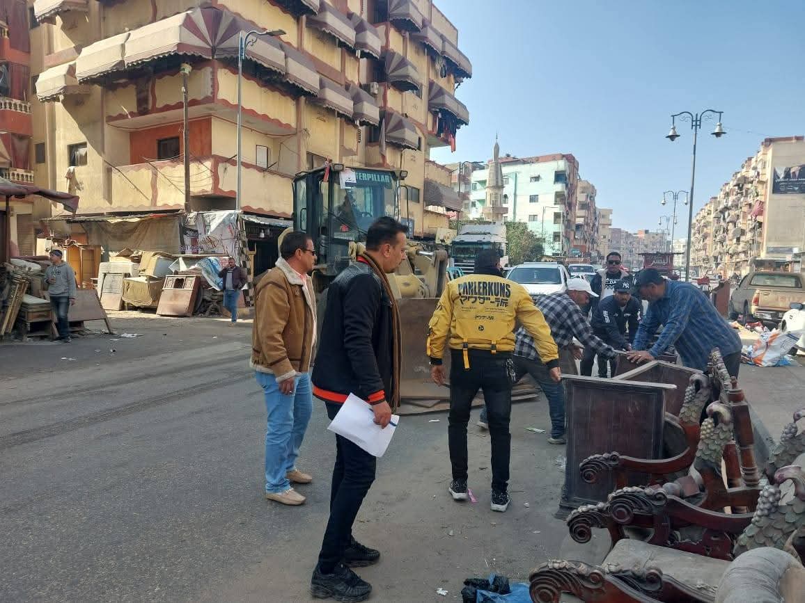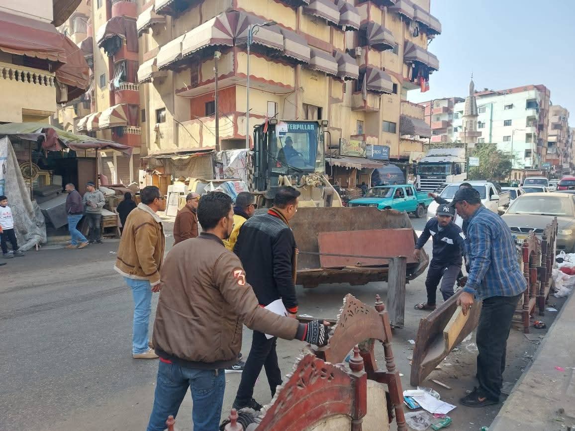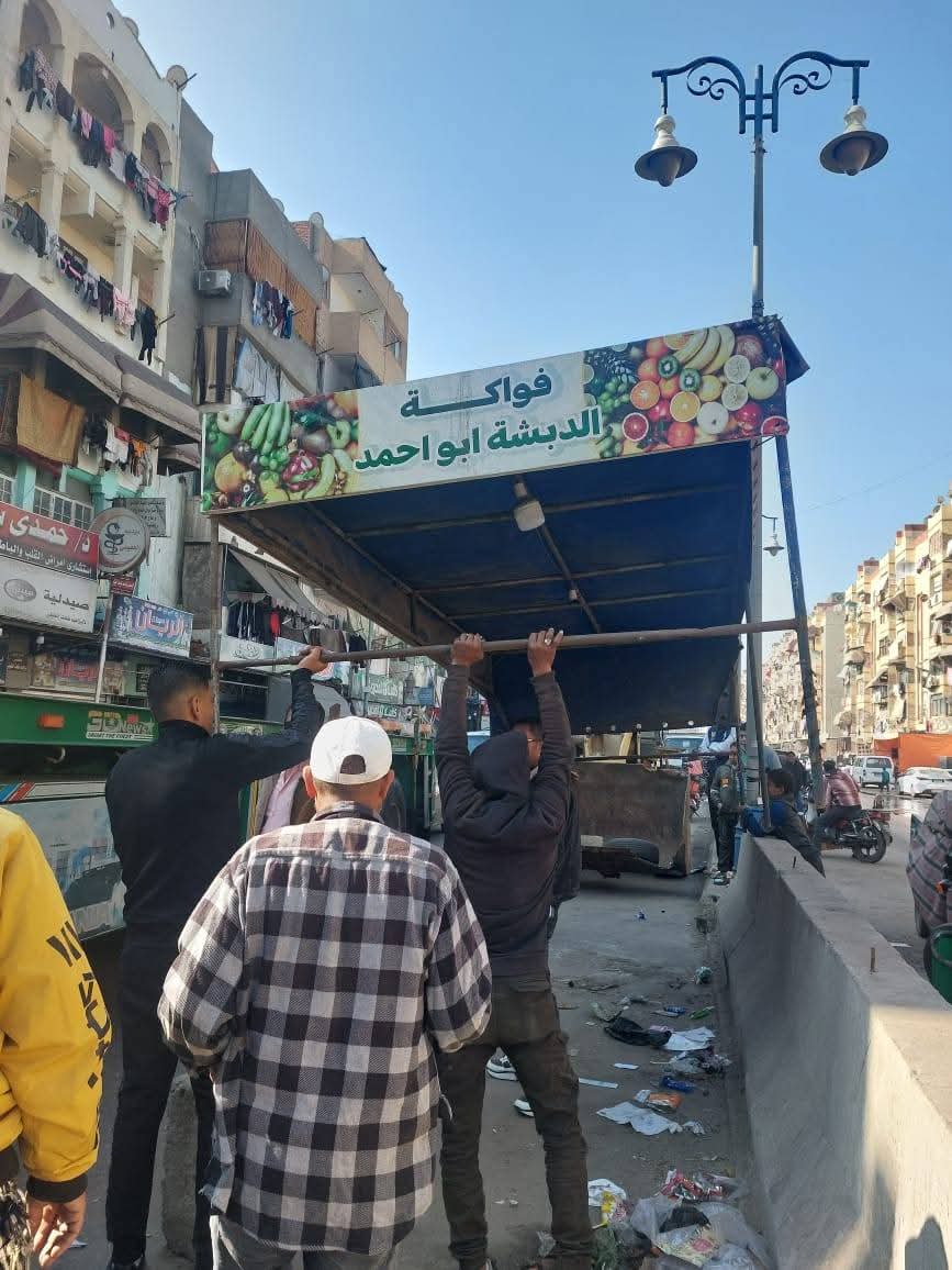 وقد اسفرت جهود الحملة عن ازالة فروشات للخضار والفاكهة واقفاص خشبية وأقفاص بلاستيكية وعربات يد وتند وشماسي وكراسي وترابيزات من امام احد المقاهى وفروشات لبيع الاسماك والبحريات و استاندات وحوامل معدنية وألواح وفروشات لبيع سلع متنوعة من امام الرصيف العام ونهر الطريق مستخدمين سيارات ومعدات الحى