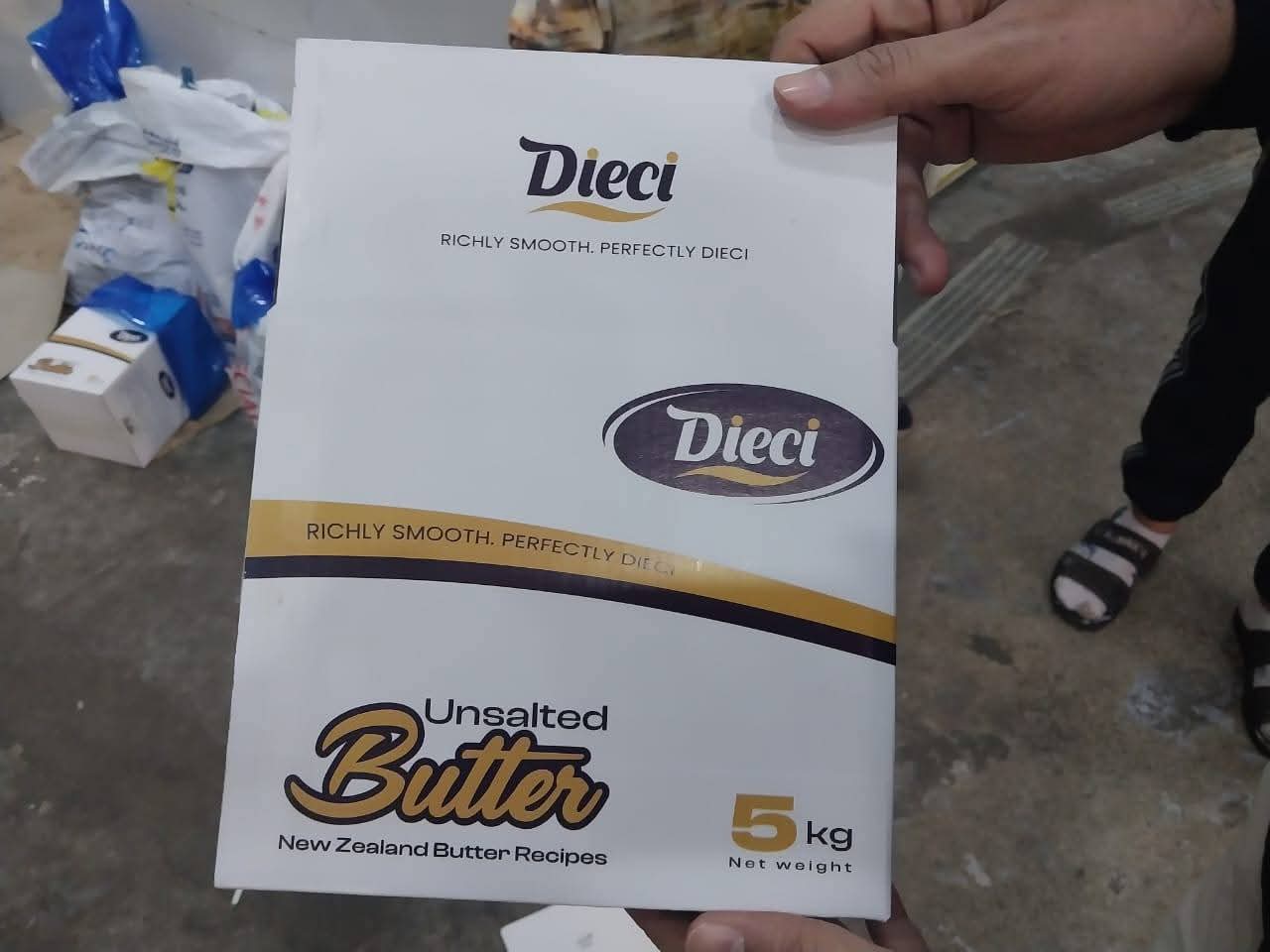 تم ضبط والتحفظ على الكميات الآتية:عدد 200 صفيحة سمنة فينسيا زنة الصفيحة 11 كجم، عدد 700 كرتونة زبدة ديتشي زنة الكرتونة 5 كجم، عدد 600 كرتونة زبدة ويسترو زنة الكرتونة 5 كجم عدد 150 كرتونة زبدة ديتشي زنة الكرتونة 10 كجم عدد 150 كرتونة زبدة فينسيا زنة الكرتونة 10 كجم.